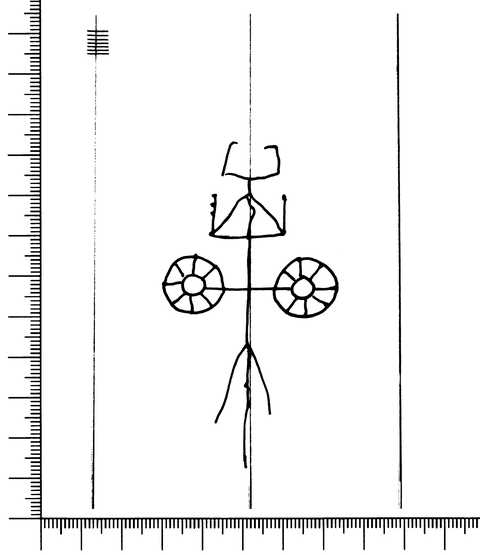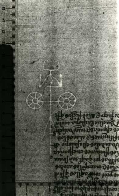 Tipo de filigrana: Sencilla Parte estudiada: Toda la filigrana Código del Motivo: L.01.01.00 Descripción: Carro con dos ruedas Estructura: Tradicional de líneas Altura (mm): 82 Anchura (mm): 43 Tipo de papel: Verjurado Posición en la hoja: Izquierda centro Nº de corondeles en la hoja: 13 Distancia entre corondeles: 4-21-37-(38)-(38)-38-38-36-39-39-39-37-19-3 Situada entre el corondel 3 y el corondel 5 Posición en relación al texto: Perpendicular al texto hacia abajo Origen de los datos: Datos obtenidos del original Información adicional: Son visibles las puntadas que unen la filigrana a la verjura. Se ven muy mal el rorondel de apoyo. Autor de los datos de este registro: María Dolores Díaz de Miranda Macías Tipo de uso: Papel para escribir Estado de la hoja: Cortados todos los bordes Altura de la hoja: 283 Anchura de la hoja: 426 Color de la hoja: Natural Estado de conservación: Regular Información adicional: Hay en la altura del papel unas diferencias del borde externo al interno: 280-285. Tomamos la medida a la altura de la filigrana. Institución: Archivo del Monasterio de San Pelayo