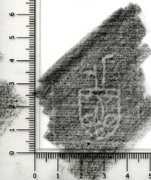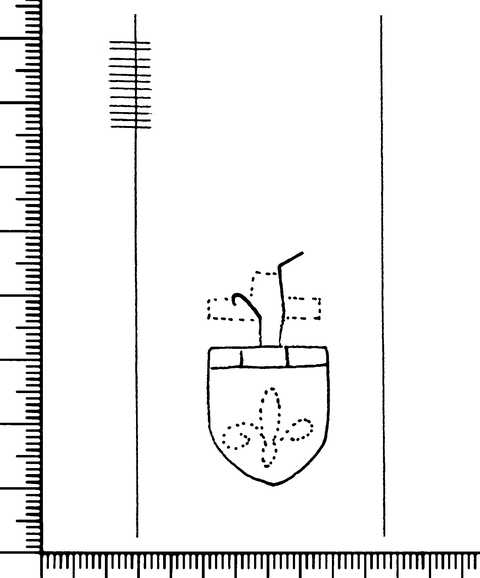Tipo de filigrana: Sencilla Parte estudiada: Toda la filigrana Código del Motivo: T.01.09.01 Descripción: Flor de Lis, bajo un lambel, dentro de un escudo y encima una cruz latina Estructura: Tradicional de líneas Altura (mm): 37 Anchura (mm): 18 Tipo de papel: Verjurado Posición en la hoja: Derecha centro Nº de corondeles en la hoja: 11 Distancia entre corondeles: 26-40-38-38-41-40-39-43-(38)-42-24-19 Situada entre el corondel 8 y el corondel 9 Posición en relación al texto: Perpendicular al texto hacia arriba Origen de los datos: Datos obtenidos del original Información adicional: Son visibles las puntadas que unen la filigrana a la verjura. Tiene torcidos los corondeles nº 1, 2, 3, 4, 8, 9, 10 y 11. El corondel de apoyo (nº 11) está muy torcido. País de localizatión del molino: Francia, según Briquet Autor de los datos de este registro: María Dolores Díaz de Miranda Macías Tipo de uso: Papel para escribir Estado de la hoja: Cortado borde derecho e izquierdo Altura de la hoja: 307 Anchura de la hoja: 428 Color de la hoja: Natural Estado de conservación: Bueno pH del papel: 6,73 Indicador de pH: Por electrodo de contacto Institución: Archivo del Monasterio de San Pelayo