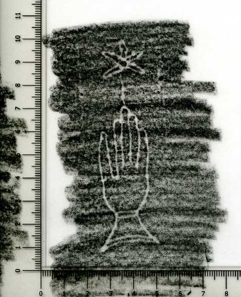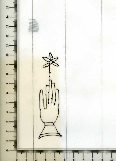 Tipo de filigrana: Sencilla Parte estudiada: Toda la filigrana Código del Motivo: B.02.02.02 Descripción: Mano con flor. Estructura: Tradicional de líneas Altura (mm): 92 Anchura (mm): 26 Tipo de papel: Verjurado Posición en la hoja: Medio centro Nº de corondeles en la hoja: 6 Distancia entre corondeles: Situada entre el corondel 3 y el corondel 4 Posición en relación al texto: Perpendicular al texto hacia abajo Origen de los datos: Datos obtenidos del original Información adicional: Apenas se distingue el corondel de apoyo. Autor de los datos de este registro: María Dolores Díaz de Miranda Macías Tipo de uso: Papel para escribir Estado de la hoja: Cortado borde izquierdo Altura de la hoja: 310 Anchura de la hoja: 226 Color de la hoja: Natural Estado de conservación: Bueno pH del papel: 7,32 Indicador de pH: Por electrodo de contacto Institución: Archivo de la Catedral de Oviedo.