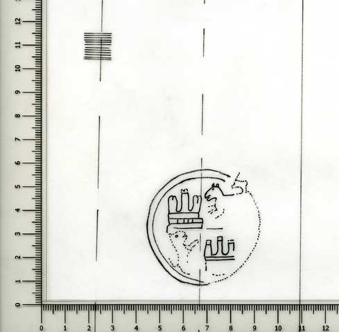 Tipo de filigrana: Sencilla Parte estudiada: Toda la filigrana Código del Motivo: T.04.01.99 Descripción: Escudo heráldico con los emblemas de Castilla y León (Incompleta) Estructura: Tradicional de líneas Altura (mm): 48 Anchura (mm): [46] Tipo de papel: Verjurado Posición en la hoja: Medio centro Nº de corondeles en la hoja: 6 Distancia entre corondeles: 10-24-43-(43)-(42)-41-24 Situada entre el corondel 3 y el corondel 5 Posición en relación al texto: Perpendicular al texto hacia arriba Origen de los datos: Datos obtenidos del original Información adicional: Los datos han sido tomados antes de restaurar el papel. Estaba en muy mal estado de restauración. Se observan las huellas de las puntadas que cosen la filigrana a la verjura de la forma. Se aprecian muy mal las huellas de la verjura a causa del mal estado de conservación del papel. País de localizatión del molino: España ? Autor de los datos de este registro: María Dolores Díaz de Miranda Macías Tipo de uso: Papel para escribir Estado de la hoja: Cortado borde izquierdo, derecho e inferior Altura de la hoja: 250 Anchura de la hoja: 227 Color de la hoja: Natural Estado de conservación: Restaurado pH del papel: 6,96 Indicador de pH: Por electrodo de contacto Institución: Archivo de la Catedral de Oviedo