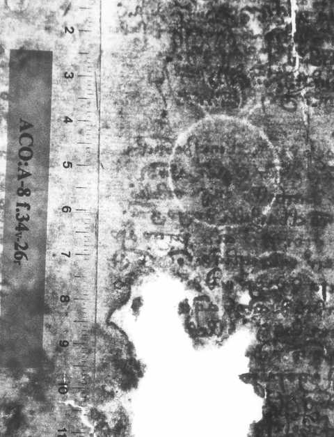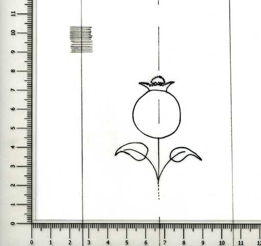 Tipo de filigrana: Sencilla Parte estudiada: Toda la filigrana Código del Motivo: G.04.03.00 Descripción: Vegetal con corona: Granada Estructura: Tradicional de líneas Altura (mm): ? Anchura (mm): 45 Tipo de papel: Verjurado Posición en la hoja: Derecha centro Nº de corondeles en la hoja: 6 Distancia entre corondeles: Situada entre el corondel 4 y el corondel 6 Posición en relación al texto: Perpendicular al texto hacia arriba Origen de los datos: Datos obtenidos del original Información adicional: Son visibles las puntadas que unen la filigrana a la verjura. Se ve muy mal todo por estar en malísimo estado de conservación. Filigrana incompleta por grandes pérdidas de papel. Autor de los datos de este registro: María Dolores Díaz de Miranda Macías Tipo de uso: Papel para escribir Estado de la hoja: Cortado borde izquierdo, derecho e inferior Altura de la hoja: 255 Anchura de la hoja: 224 Color de la hoja: Natural Estado de conservación: Malo pH del papel: 6,89 Indicador de pH: Por electrodo de contacto Institución: Archivo de la Catedral de Oviedo.