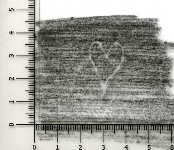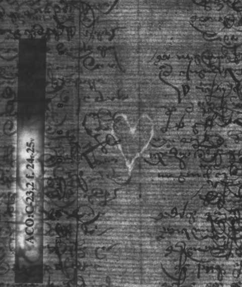 Tipo de filigrana: Sencilla Parte estudiada: Toda la filigrana Código del Motivo: A.03.01.00 Descripción: Corazón. Estructura: Tradicional de líneas Altura (mm): 23 Anchura (mm): 16 Tipo de papel: Verjurado Posición en la hoja: Medio centro Nº de corondeles en la hoja: 4 Distancia entre corondeles: Situada entre el corondel 2 y el corondel 3 Posición en relación al texto: Perpendicular al texto hacia arriba Origen de los datos: Datos obtenidos del original Información adicional: Son visibles las puntadas que unen la filigrana a la verjura. Los puntizones del borde inferior hacen ondas. Otros folios o signaturas del documento donde aparece la filigrana: Filigranas idénticas: - Folio 3-46 de este mismo libro. - 000064 y 000188. Autor de los datos de este registro: María Dolores Díaz de Miranda Macías Tipo de uso: Papel para escribir Estado de la hoja: Cortado borde derecho e izquierdo Altura de la hoja: 305 Anchura de la hoja: 221 Color de la hoja: Natural Estado de conservación: Bueno pH del papel: 6,52 Indicador de pH: Por electrodo de contacto Institución: Archivo de la Catedral de Oviedo.