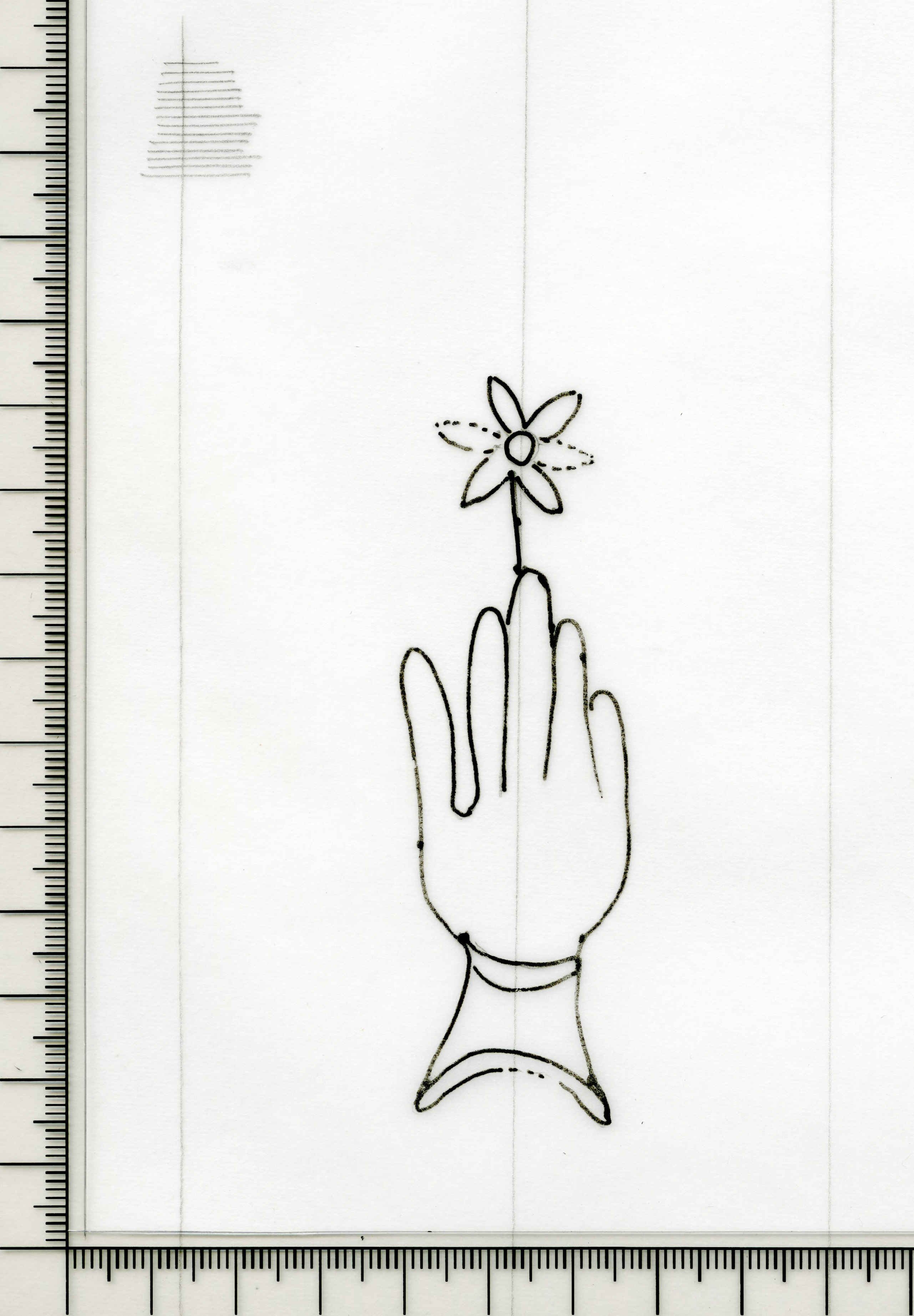 Tipo de filigrana: Sencilla Parte estudiada: Toda la filigrana Código del Motivo: B.02.02.03 Descripción: Mano con cuatro dedos juntos y el pulgar separado. Encima flor de seis puntas Estructura: Tradicional de líneas Altura (mm): 92 Anchura (mm): 28 Tipo de papel: Verjurado Posición en la hoja: Izquierda centro Nº de corondeles en la hoja: 6 Distancia entre corondeles: Situada entre el corondel 1 y el corondel 3 Posición en relación al texto: Perpendicular al texto hacia abajo Origen de los datos: Datos obtenidos del original Información adicional: Son visibles las puntadas que unen la filigrana a la verjura. Autor de los datos de este registro: María Dolores Díaz de Miranda Macías y Ana María Herrero Estado de la hoja: Cortado borde derecho e izquierdo Altura de la hoja: 315 Anchura de la hoja: 226 Color de la hoja: Natural Estado de conservación: Bueno pH del papel: 6,79 Institución: Archivo de la Catedral de Oviedo.