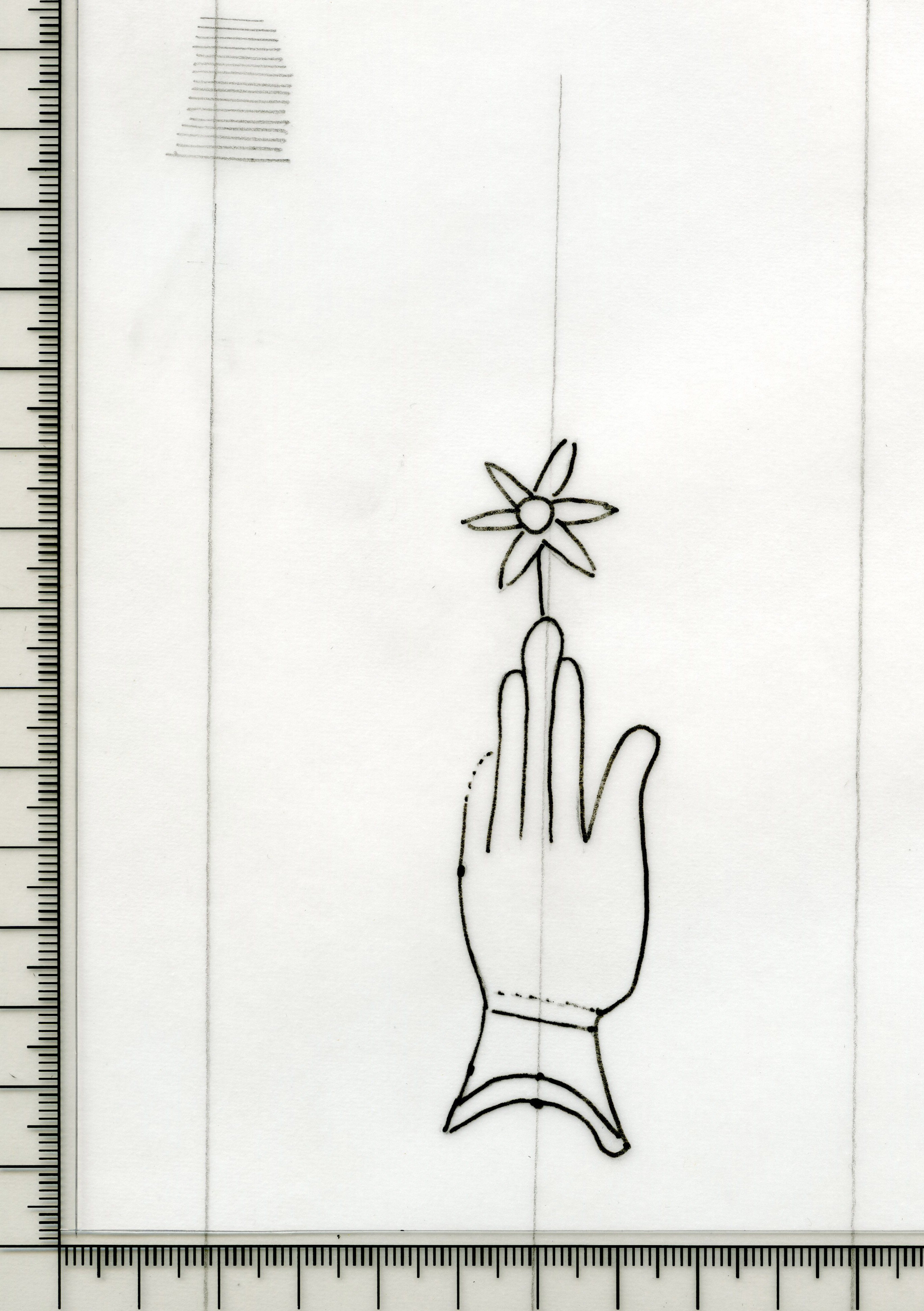Tipo de filigrana: Sencilla Parte estudiada: Toda la filigrana Código del Motivo: B.02.02.03 Descripción: Mano con cuatro dedos juntos y el pulgar separado. Encima flor de seis puntas Estructura: Tradicional de líneas Altura (mm): 92 Anchura (mm): 23 Tipo de papel: Verjurado Posición en la hoja: Derecha centro Nº de corondeles en la hoja: 7 Distancia entre corondeles: Situada entre el corondel 4 y el corondel 6 Posición en relación al texto: Perpendicular al texto hacia arriba Origen de los datos: Datos obtenidos del original Información adicional: Son visibles las puntadas que unen la filigrana a la verjura. Autor de los datos de este registro: María Dolores Díaz de Miranda Macías y Ana María Herrero Estado de la hoja: Cortado borde derecho e izquierdo Altura de la hoja: 306 Anchura de la hoja: 227 Color de la hoja: Natural Estado de conservación: Bueno pH del papel: 7,21 Institución: Archivo de la Catedral de Oviedo.