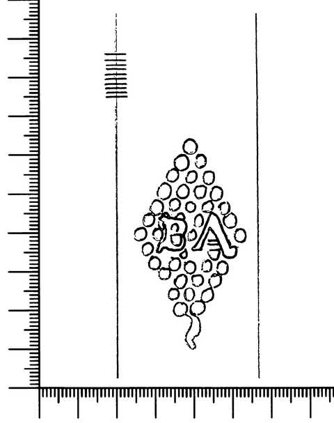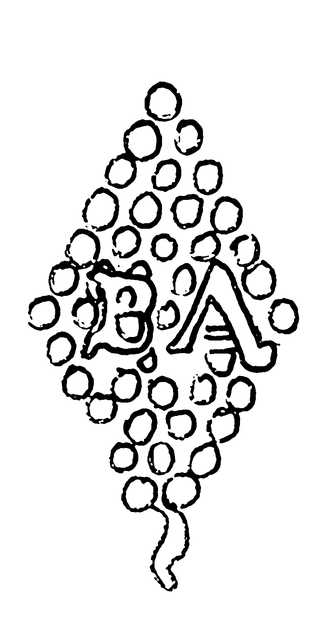 Tipo de filigrana: Sencilla Parte estudiada: Toda la filigrana Código del Motivo: G.04.07.02 Descripción: Racimo de uvas. Letras en el interior: BA Estructura: Tradicional de líneas Altura (mm): 55 Anchura (mm): 31 Tipo de papel: Verjurado Posición en la hoja: Derecha centro Nº de corondeles en la hoja: 15 Distancia entre corondeles: Situada entre el corondel 14 y el corondel 15 Posición en relación al texto: Perpendicular al texto hacia arriba Origen de los datos: Datos obtenidos del original Información adicional: En este libro se encuentran filigranas idénticas y gemelas, aunque se colocan a mano derecha de la hoja de papel. Se ve muy mal la filigrana. Se ha tomado la filigrana con las letras al derecho. Autor de los datos de este registro: María Dolores Díaz de Miranda Macías Tipo de uso: Papel para escribir Estado de la hoja: Cortados todos los bordes Altura de la hoja: 430 Anchura de la hoja: 585 Color de la hoja: Natural Estado de conservación: Bueno pH del papel: 6,29 Indicador de pH: Por electrodo de contacto Institución: Archivo de Juntas del Principado de Asturias.