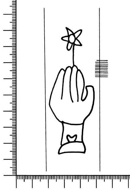 Tipo de filigrana: Sencilla Parte estudiada: Toda la filigrana Código del Motivo: B.02.04.05 Descripción: Mano con cuatro dedos juntos y el pulgar separado, sobre la punta del dedo medio hay una estrella o florón de cinco puntas y en la muñeca la mitad de un corazón. Estructura: Tradicional de líneas Altura (mm): 78 Anchura (mm): 27 Tipo de papel: Verjurado Posición en la hoja: Medio centro Nº de corondeles en la hoja: 7 Distancia entre corondeles: Situada entre el corondel 4 y el corondel 5 Posición en relación al texto: Paralelo al texto en sentido contrario Origen de los datos: Datos obtenidos del original Información adicional: Se observan las huellas de las puntadas que cosen la filigrana a la verjura de la forma. Los corondeles de apoyo tienen puntadas distintas a las de los demás corondeles. Autor de los datos de este registro: María Dolores Díaz de Miranda Macías Tipo de uso: Papel para escribir Estado de la hoja: Cortados todos los bordes Altura de la hoja: 304 Anchura de la hoja: 210 Color de la hoja: Natural Estado de conservación: Restaurado pH del papel: 5,20 - 5,30 Indicador de pH: Por electrodo de contacto Institución: Biblioteca de la Universidad de Oviedo.