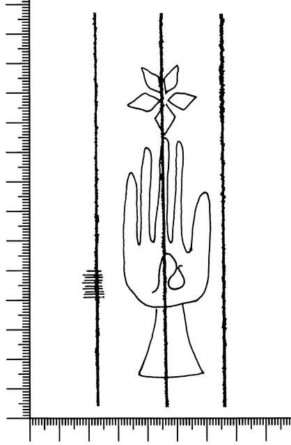 Tipo de filigrana: Sencilla Parte estudiada: Toda la filigrana Código del Motivo: B.02.06.00 Descripción: Mano con cinco dedos separados. En la palma de la mano aparece un signo, y sobre la punta del dedo medio tiene una estrella de cinco puntas. Estructura: Tradicional de líneas Altura (mm): 102 Anchura (mm): 29 Tipo de papel: Verjurado Posición en la hoja: Medio centro Nº de corondeles en la hoja: 5 Distancia entre corondeles: Situada entre el corondel 2 y el corondel 4 Posición en relación al texto: Paralelo al texto en sentido contrario Origen de los datos: Datos obtenidos del original Información adicional: Se observan las huellas de las puntadas que cosen la filigrana a la verjura de la forma. La cadenata de los corondeles está realizada de forma poco habitual, deja una huella muy gruesa. Autor de los datos de este registro: María Dolores Díaz de Miranda Macías Tipo de uso: Papel para escribir Estado de la hoja: Cortados todos los bordes Altura de la hoja: 303 Anchura de la hoja: 210 Color de la hoja: Natural Estado de conservación: Restaurado pH del papel: 5,20 - 5,30 Indicador de pH: Por electrodo de contacto Institución: Biblioteca de la Universidad de Oviedo.