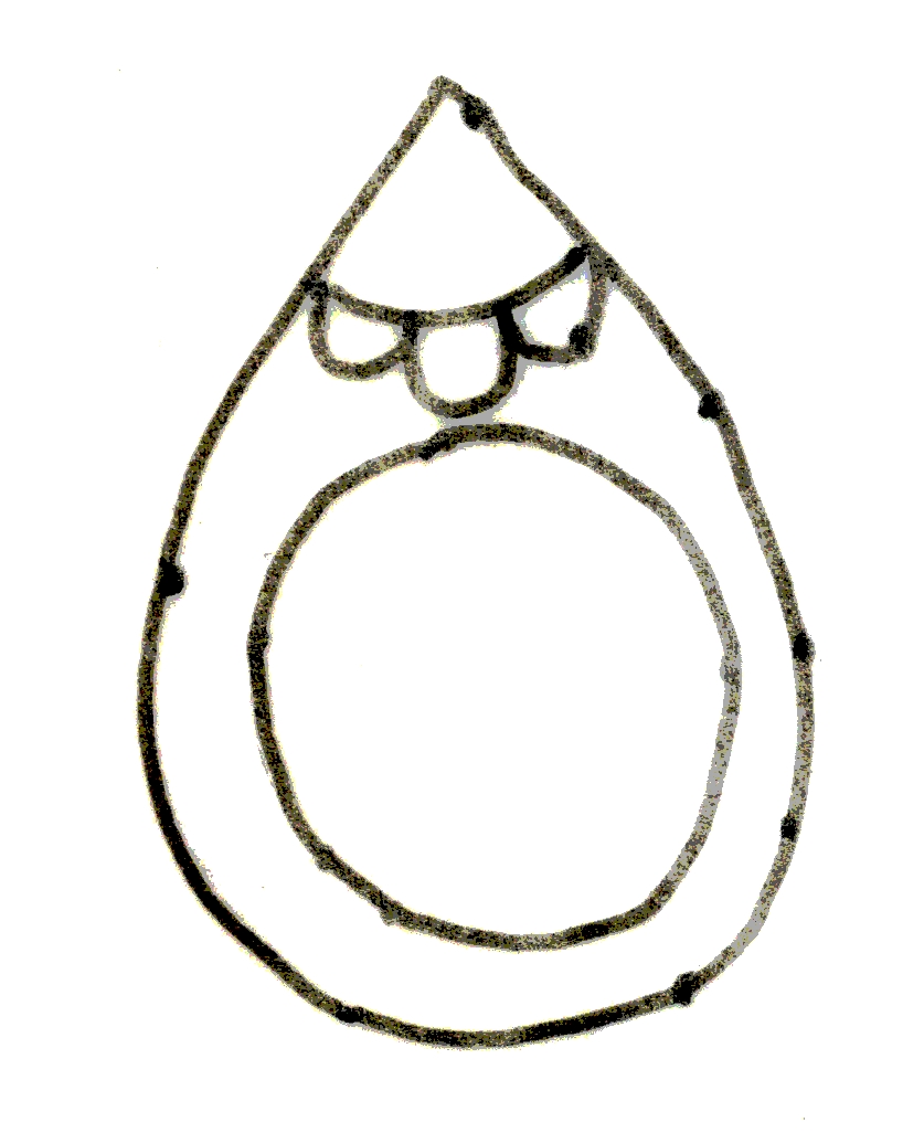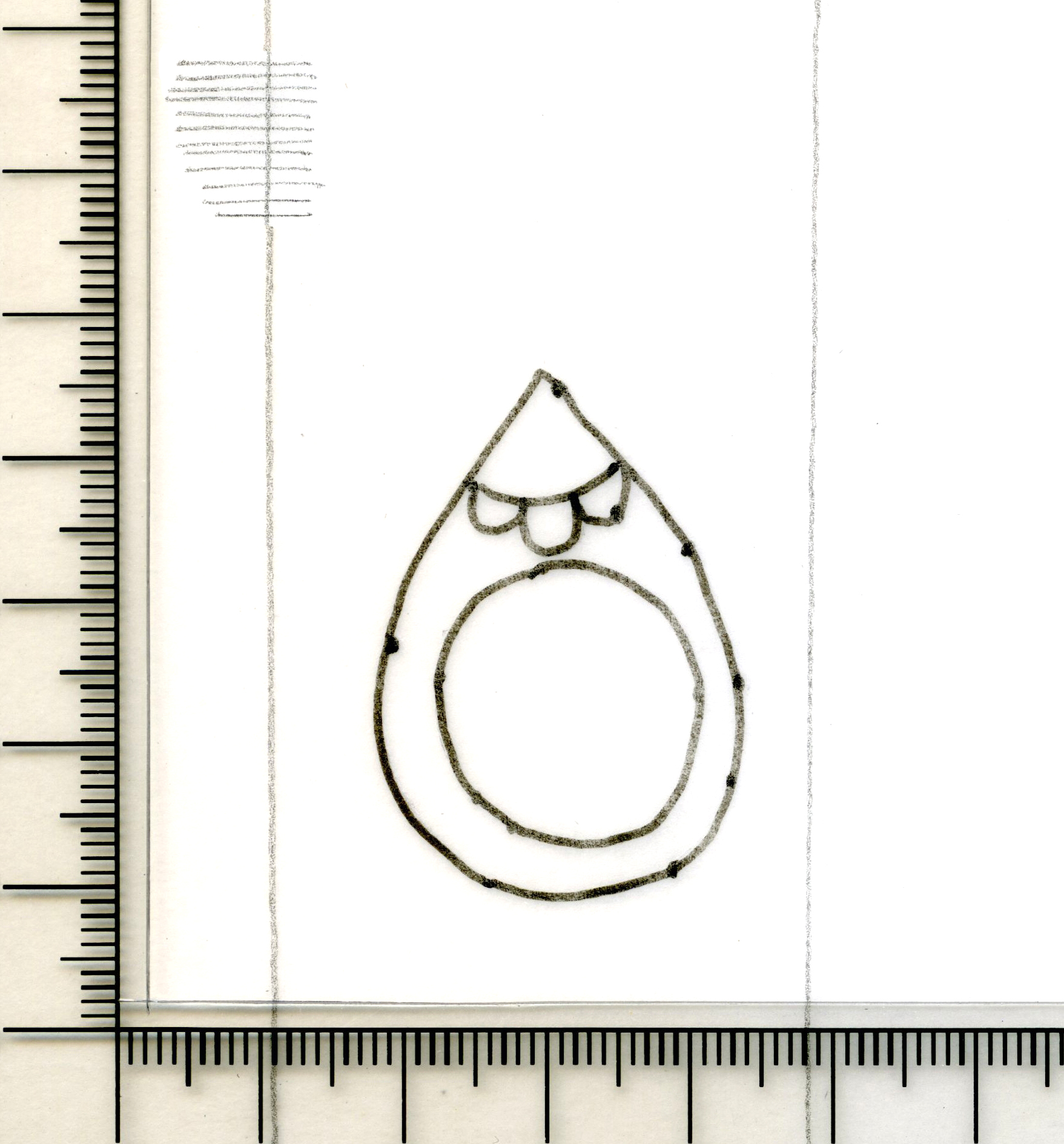 Tipo de filigrana: Sencilla Parte estudiada: Toda la filigrana Código del Motivo: Q.01.01.00 Descripción: Anillo con diamante. Sin motivos secundarios Estructura: Tradicional de líneas Altura (mm): 38 Anchura (mm): 26 Tipo de papel: Verjurado Posición en la hoja: Medio centro Nº de corondeles en la hoja: 6 Distancia entre corondeles: Situada entre el corondel 4 y el corondel 5 Posición en relación al texto: Perpendicular al texto hacia abajo Origen de los datos: Datos obtenidos del original Información adicional: Son visibles las puntadas que unen la filigrana a la verjura. Se ven mal los corondeles, incluído el corondel de apoyo. Observando el pliego entero, se ven torcidos los corondeles nº 5, 9, 10 y 11. Autor de los datos de este registro: María Dolores Díaz de Miranda Macías y Ana María Herrero Estado de la hoja: Cortado borde derecho Altura de la hoja: 303 Anchura de la hoja: 223 Color de la hoja: Natural Estado de conservación: Regular pH del papel: 7,79 Institución: Archivo de la Catedral de Oviedo.