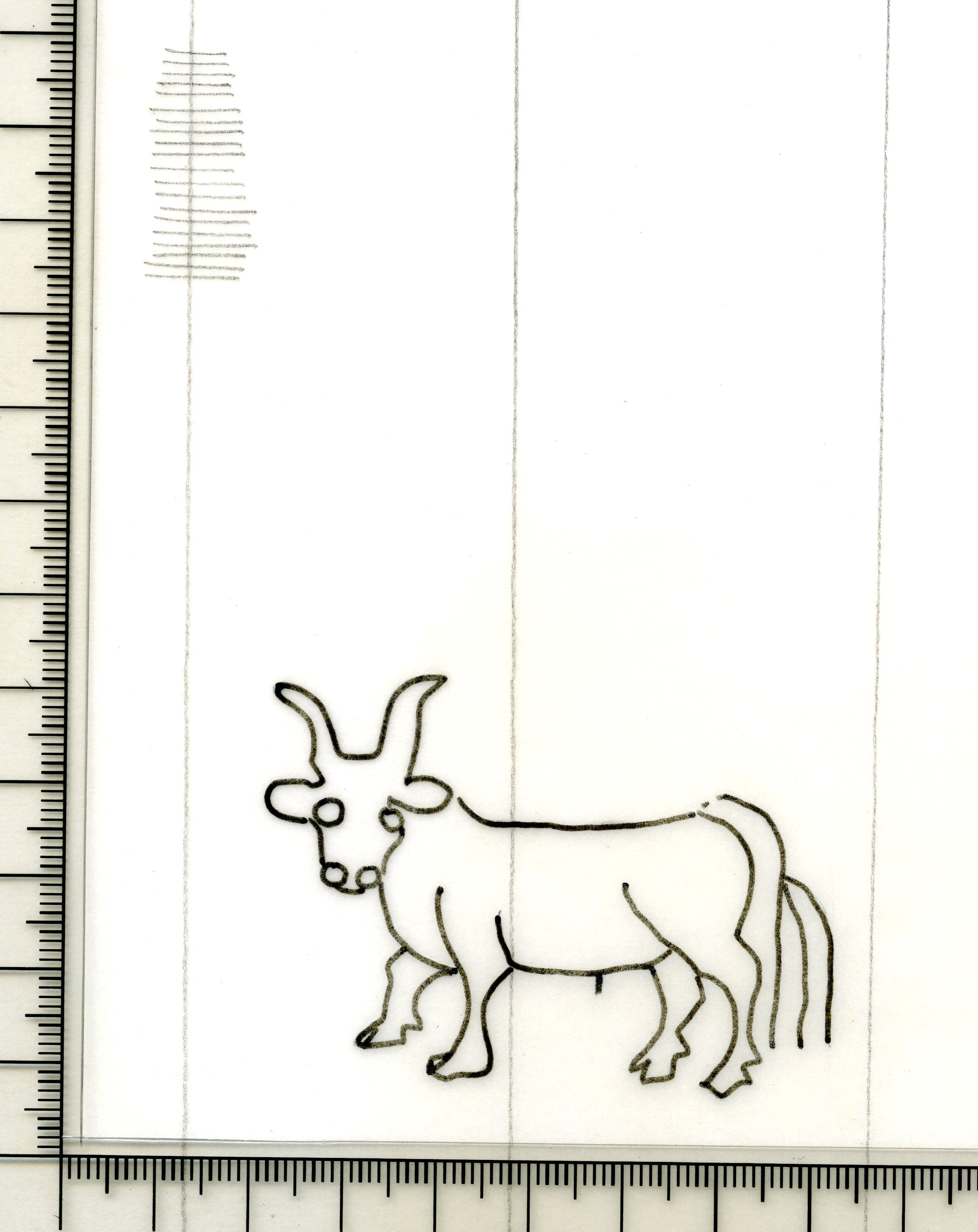 Tipo de filigrana: Sencilla Parte estudiada: Toda la filigrana Código del Motivo: C.01.01.00 Descripción: Buey o toro Estructura: Tradicional de líneas Altura (mm): 46 Anchura (mm): 60 Tipo de papel: Verjurado Posición en la hoja: Medio centro Nº de corondeles en la hoja: 6 Distancia entre corondeles: Situada entre el corondel 2 y el corondel 4 Posición en relación al texto: Perpendicular al texto hacia abajo Origen de los datos: Datos obtenidos del original Autor de los datos de este registro: María Dolores Díaz de Miranda Macías y Ana María Herrero Estado de la hoja: Cortado borde izquierdo Altura de la hoja: 300 Anchura de la hoja: 218 Color de la hoja: Natural Estado de conservación: Bueno pH del papel: 7,33 Institución: Archivo de la Catedral de Oviedo.