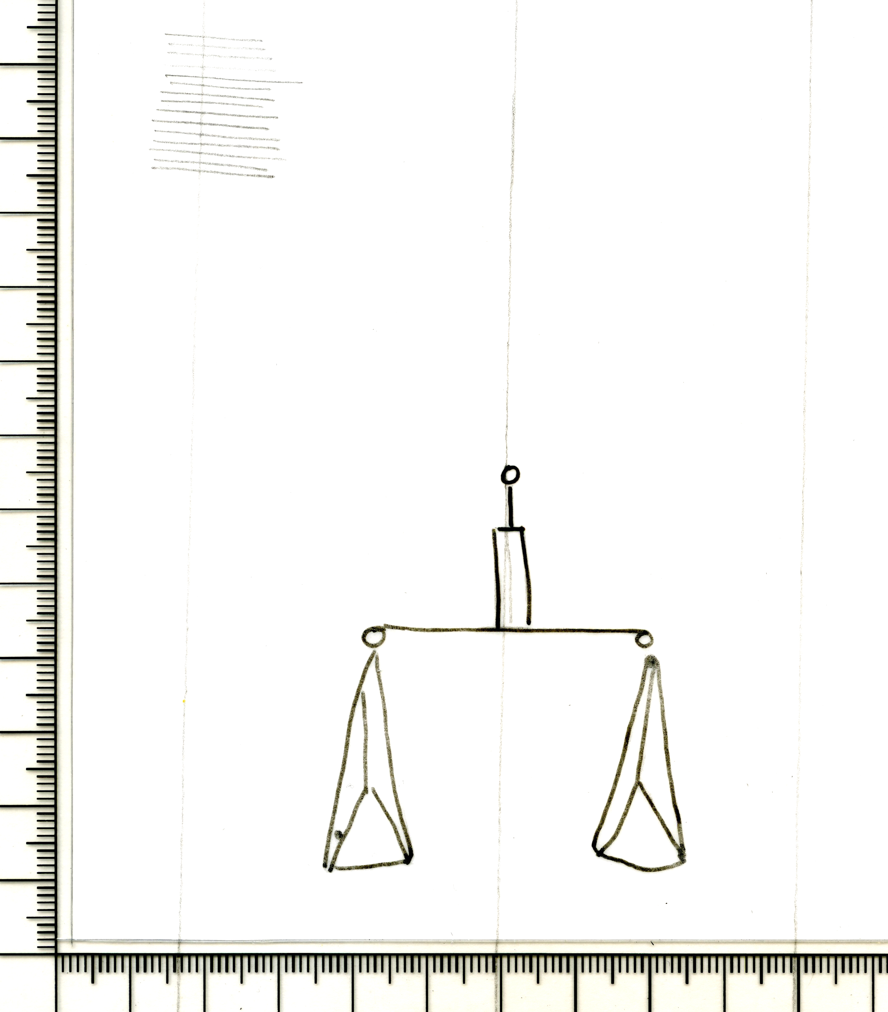 Tipo de filigrana: Sencilla Parte estudiada: Toda la filigrana Código del Motivo: N.01.01.00 Descripción: Balanza con plato plano Estructura: Tradicional de líneas Altura (mm): 55 Anchura (mm): 50 Tipo de papel: Verjurado Posición en la hoja: Izquierda centro Nº de corondeles en la hoja: 5 Distancia entre corondeles: Situada entre el corondel 1 y el corondel 3 Posición en relación al texto: Perpendicular al texto hacia abajo Origen de los datos: Datos obtenidos del original Información adicional: Son visibles las puntadas que unen la filigrana a la verjura. Se ven muy mal los corondeles. Autor de los datos de este registro: María Dolores Díaz de Miranda Macías y Ana María Herrero Estado de la hoja: Cortado borde izquierdo Altura de la hoja: 303 Anchura de la hoja: 217 Color de la hoja: Natural Estado de conservación: Bueno pH del papel: 7,85 Institución: Archivo de la Catedral de Oviedo.