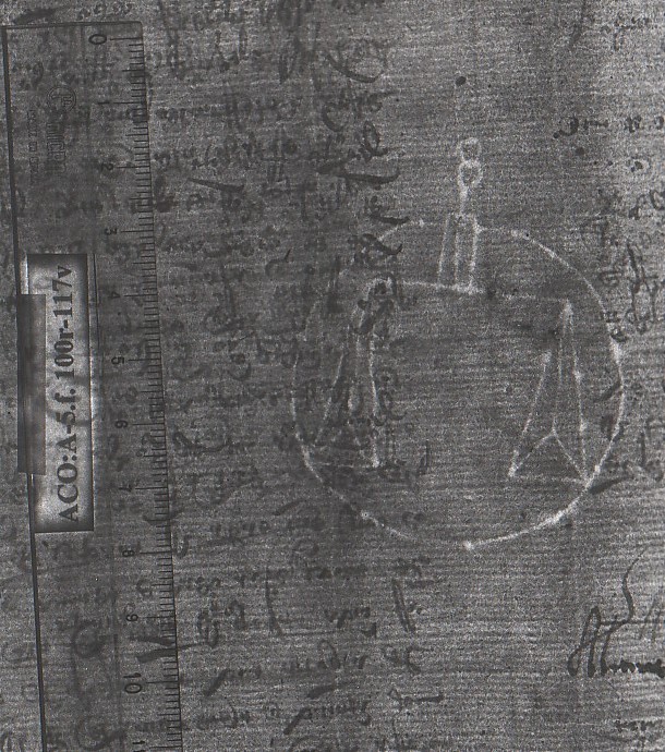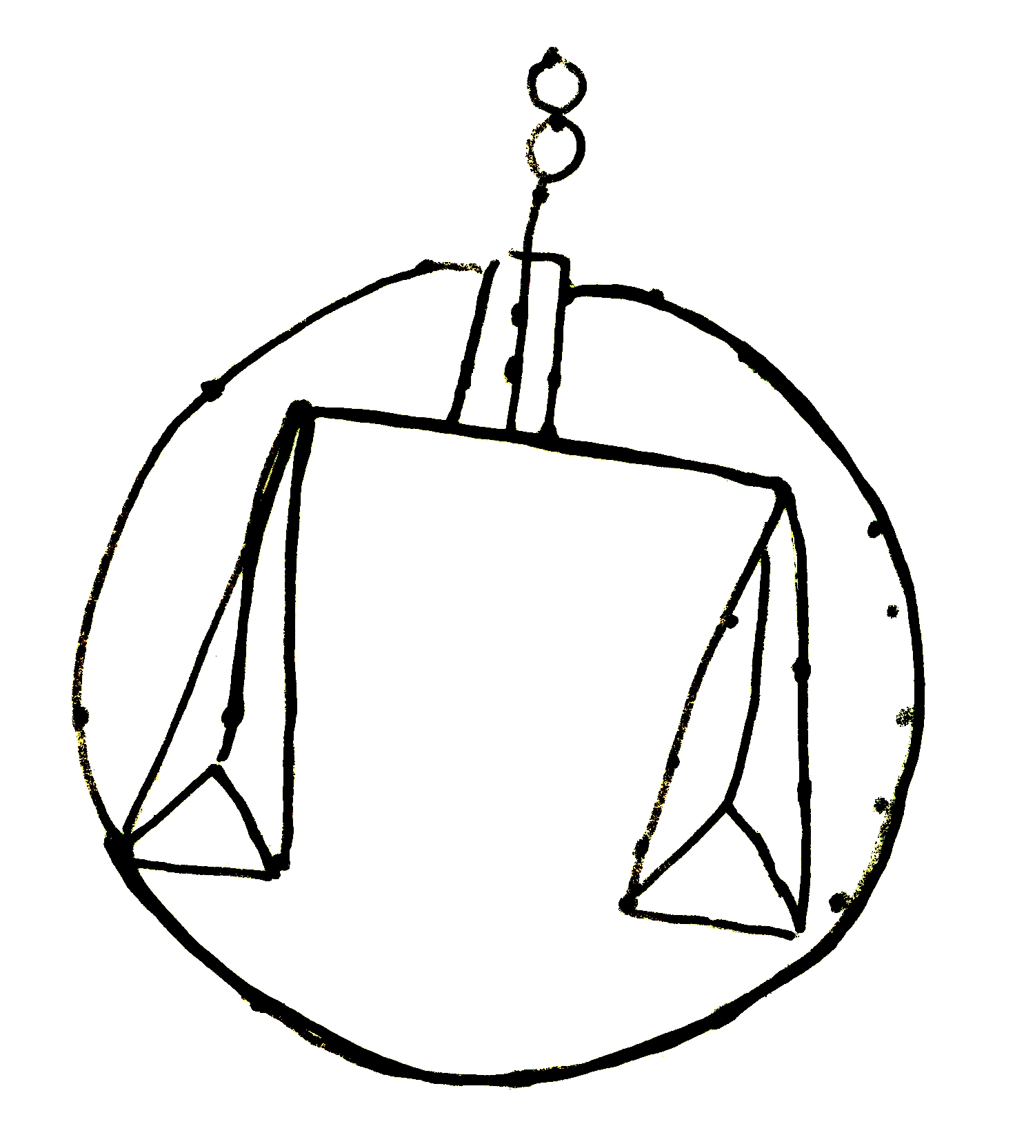 Tipo de filigrana: Sencilla Parte estudiada: Toda la filigrana Código del Motivo: N.01.03.00 Descripción: Balanza dentro de un círculo. Estructura: Tradicional de líneas Altura (mm): 63 Anchura (mm): 52 Tipo de papel: Verjurado Posición en la hoja: Medio centro Nº de corondeles en la hoja: 7 Distancia entre corondeles: Situada entre el corondel 3 y el corondel 6 Posición en relación al texto: Perpendicular al texto hacia abajo Origen de los datos: Datos obtenidos del original Información adicional: Son visibles las puntadas que unen la filigrana a la verjura. Bordes del papel muy irregulares. Se acumula pulpa en dichos bordes. Tiene torcidos los corondeles nº 4 y 6. Autor de los datos de este registro: María Dolores Díaz de Miranda Macías y Ana María Herrero Estado de la hoja: Cortado borde derecho Altura de la hoja: 308 Anchura de la hoja: 216 Color de la hoja: Natural Estado de conservación: Bueno pH del papel: 7,83 Institución: Archivo de la Catedral de Oviedo.