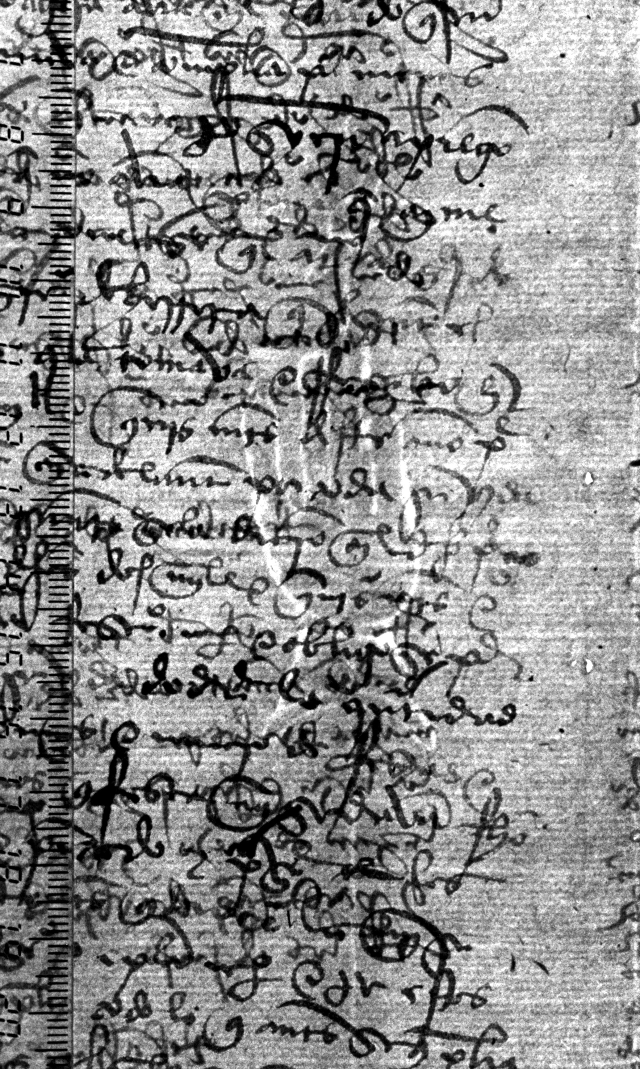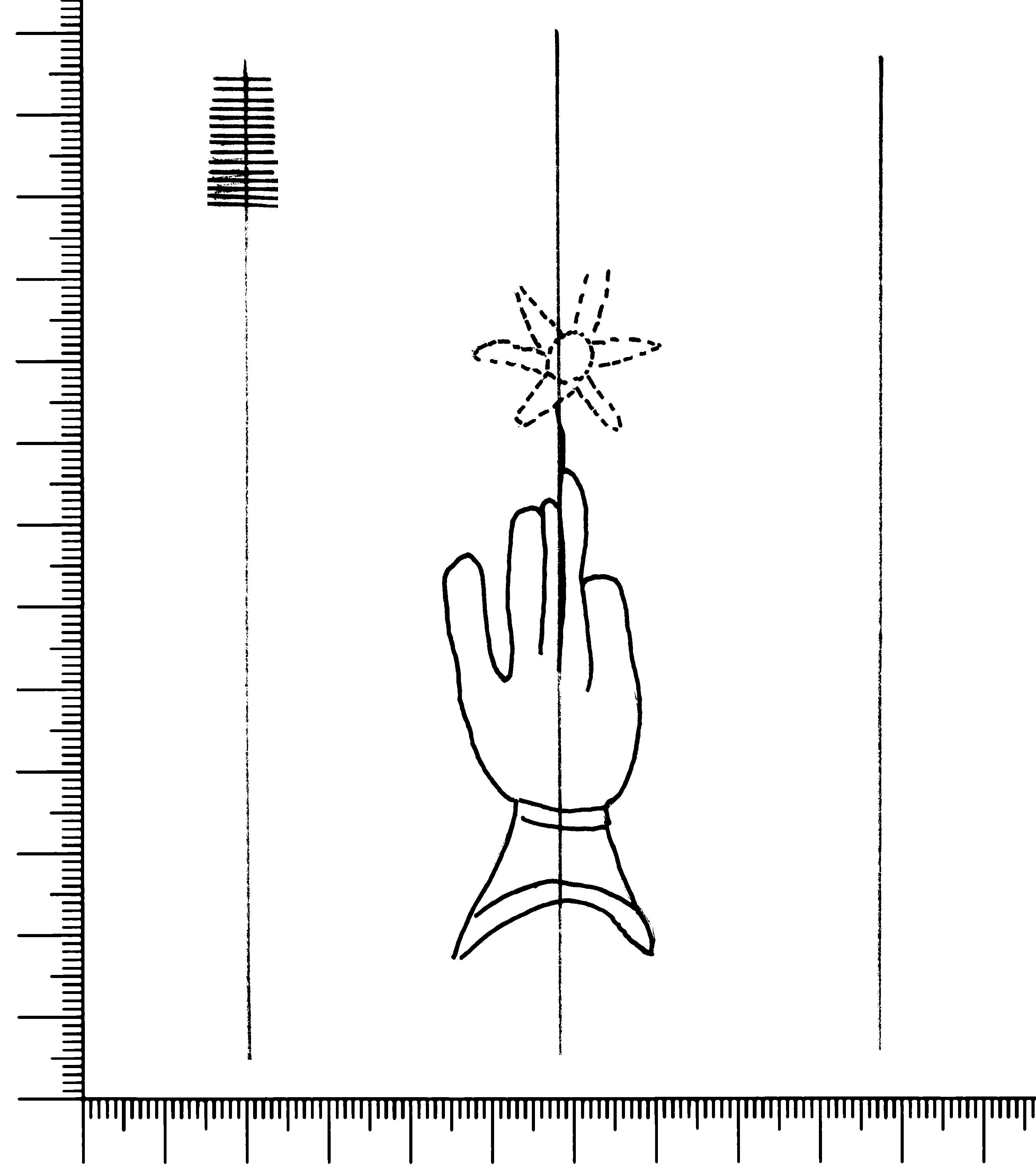 Tipo de filigrana: Sencilla Parte estudiada: Toda la filigrana Código del Motivo: B.02.02.03 Descripción: Mano con cuatro dedos juntos y pulgar separado. Encima flor de seis puntas. Estructura: Tradicional de líneas Altura (mm): [85] Anchura (mm): 28 Tipo de papel: Verjurado Posición en la hoja: Izquierda centro Nº de corondeles en la hoja: 6 Distancia entre corondeles: Situada entre el corondel 1 y el corondel 3 Posición en relación al texto: Perpendicular al texto hacia arriba Origen de los datos: Datos obtenidos del original Información adicional: Son visibles las puntadas que unen la filigrana a la verjura. Se observan defectos o alteraciones del alambre en la huella dejada por la filigrana en el papel. Se ven muy mal los corondeles y la filigrana (la flor no se aprecia prácticamente). Autor de los datos de este registro: María Dolores Díaz de Miranda Macías y Ana María Herrero Estado de la hoja: Cortado borde izquierdo Altura de la hoja: 315 Anchura de la hoja: 223 Color de la hoja: Natural Estado de conservación: Regular pH del papel: 7,26 Institución: Archivo de la Catedral de Oviedo.