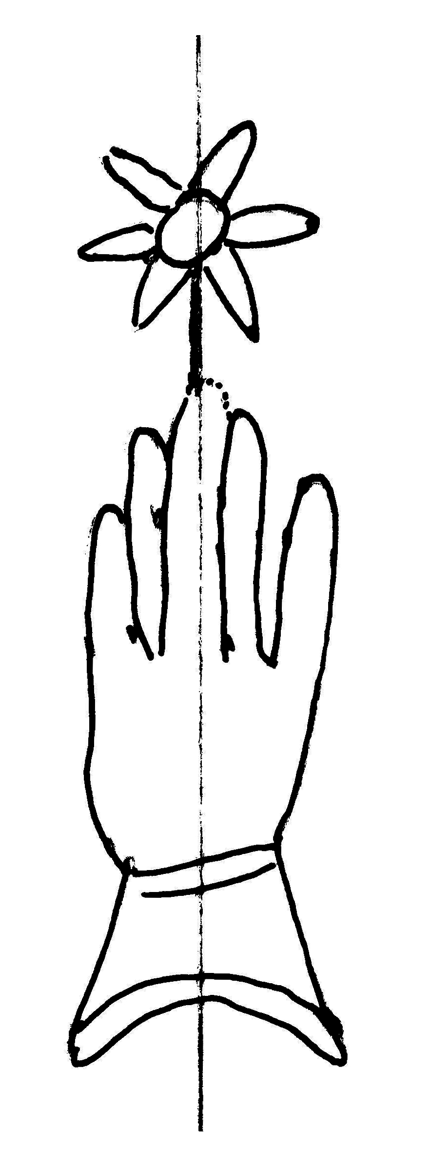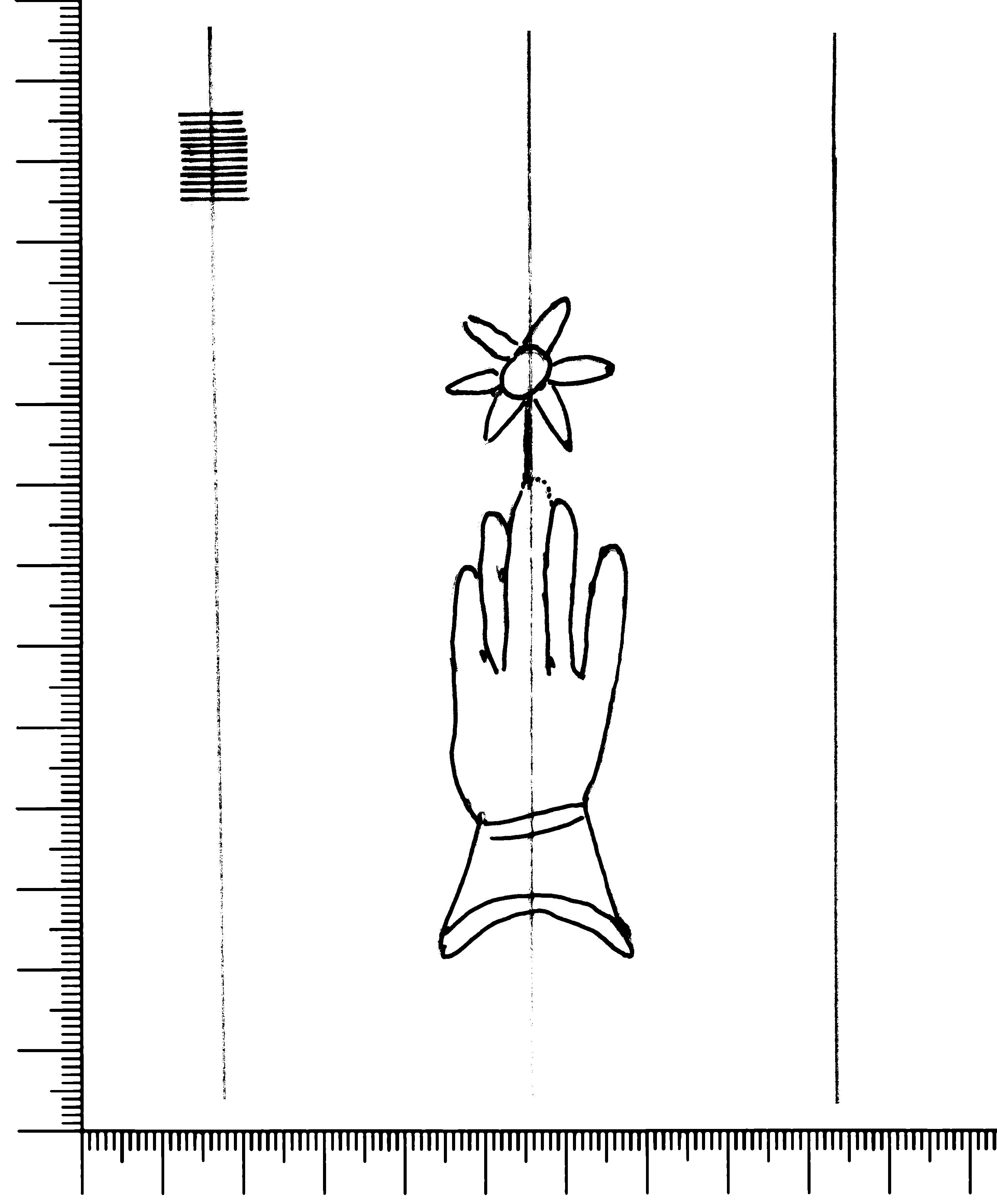 Tipo de filigrana: Sencilla Parte estudiada: Toda la filigrana Código del Motivo: B.02.02.03 Descripción: Mano con cuatro dedos juntos y pulgar separado. Encima flor de seis puntas. Estructura: Tradicional de líneas Altura (mm): 80 Anchura (mm): 25 Tipo de papel: Verjurado Posición en la hoja: Derecha centro Nº de corondeles en la hoja: 6 Distancia entre corondeles: Situada entre el corondel 4 y el corondel 6 Posición en relación al texto: Perpendicular al texto hacia abajo Origen de los datos: Datos obtenidos del original Información adicional: Son visibles las puntadas que unen la filigrana a la verjura. Se observan defectos o alteraciones del alambre en la huella dejada por la filigrana en el papel. Se ven muy mal los corondeles y la filigrana. Autor de los datos de este registro: María Dolores Díaz de Miranda Macías y Ana María Herrero Estado de la hoja: Cortado borde derecho Altura de la hoja: 315 Anchura de la hoja: 222 Color de la hoja: Natural Estado de conservación: Bueno pH del papel: 7,50 Institución: Archivo de la Catedral de Oviedo.