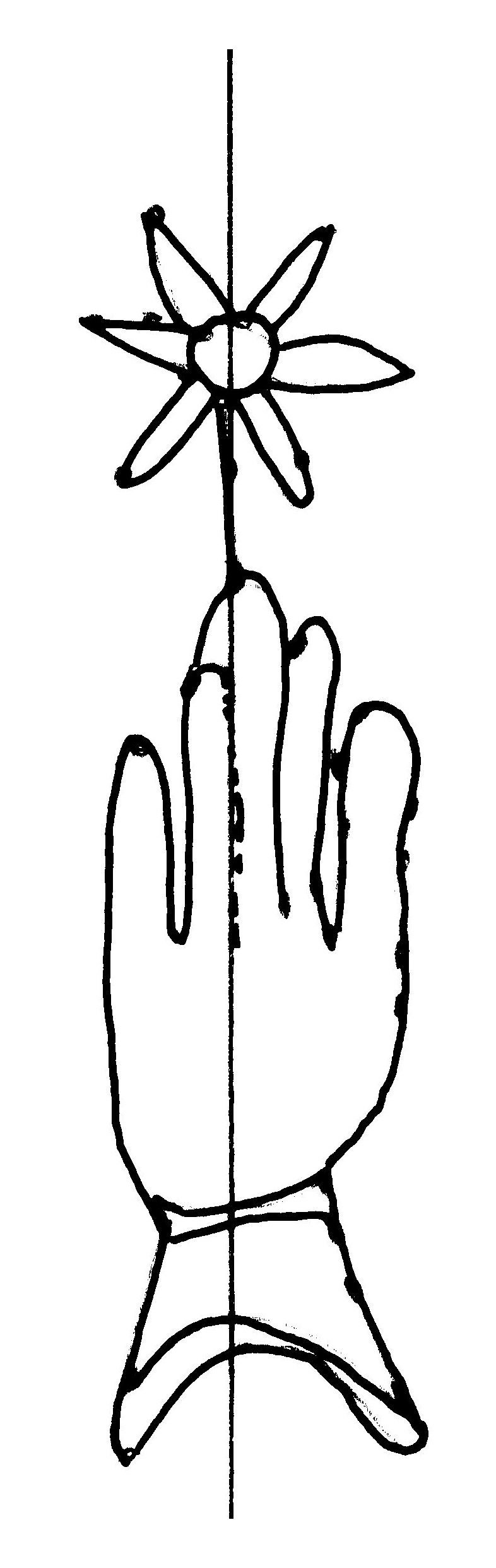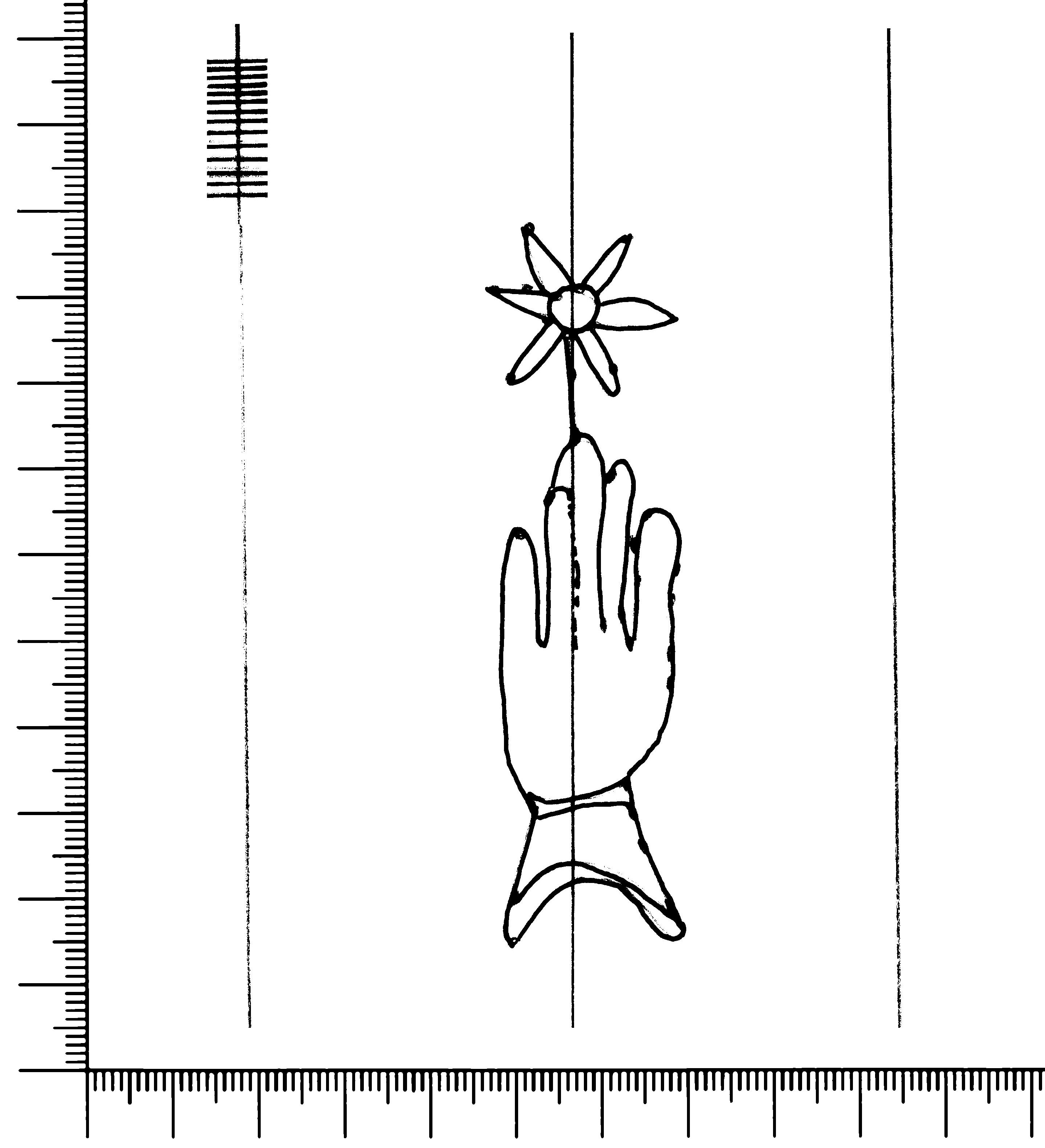 Tipo de filigrana: Sencilla Parte estudiada: Toda la filigrana Código del Motivo: B.02.03.00 Descripción: Mano con cuatro dedos juntos y pulgar separado. Encima flor de seis puntas. Estructura: Tradicional de líneas Altura (mm): 86 Anchura (mm): 22 Tipo de papel: Verjurado Posición en la hoja: Izquierda centro Nº de corondeles en la hoja: 6 Distancia entre corondeles: Situada entre el corondel 1 y el corondel 3 Posición en relación al texto: Perpendicular al texto hacia abajo Origen de los datos: Datos obtenidos del original Información adicional: Son visibles las puntadas que unen la filigrana a la verjura. Autor de los datos de este registro: María Dolores Díaz de Miranda Macías y Ana María Herrero Estado de la hoja: Cortado borde izquierdo Altura de la hoja: 315 Anchura de la hoja: 220 Color de la hoja: Natural Estado de conservación: Bueno pH del papel: 7,45 Institución: Archivo de la Catedral de Oviedo.