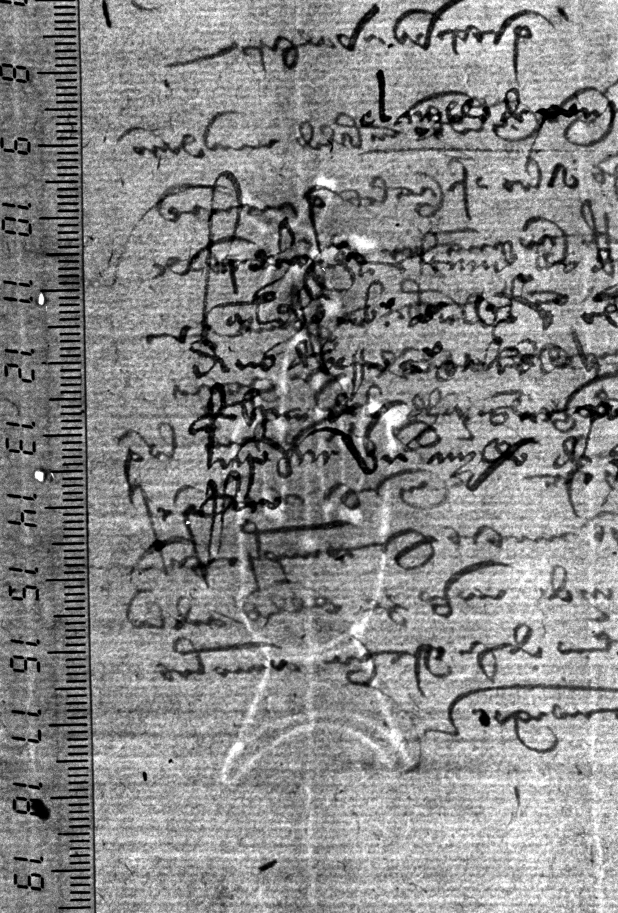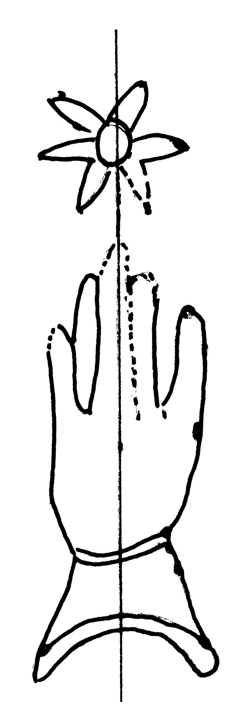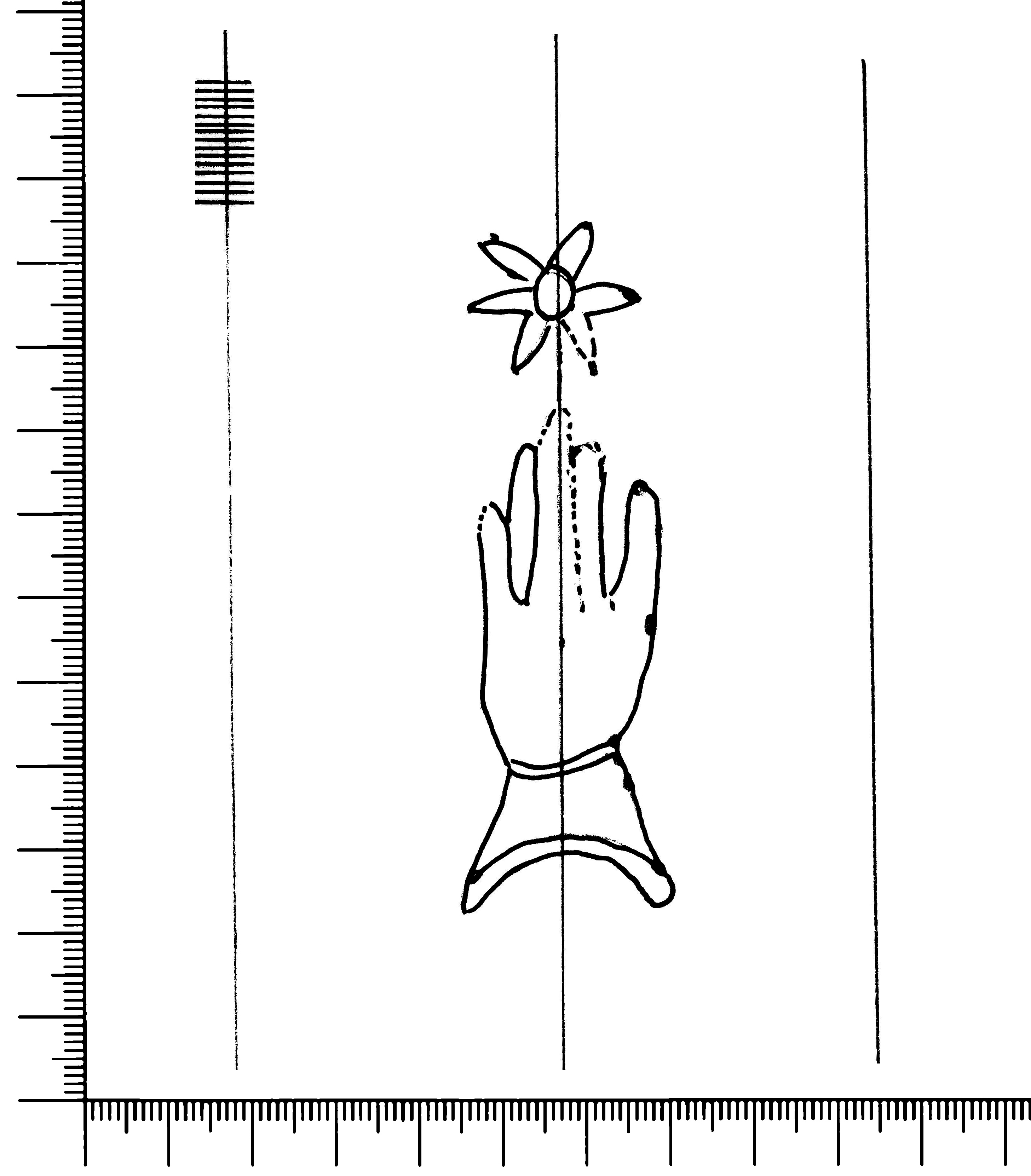 Tipo de filigrana: Sencilla Parte estudiada: Toda la filigrana Código del Motivo: B.02.02.03 Descripción: Mano con cuatro dedos juntos y pulgar separado. Encima flor de seis puntas. Estructura: Tradicional de líneas Altura (mm): 84 Anchura (mm): 26 Tipo de papel: Verjurado Posición en la hoja: Derecha centro Nº de corondeles en la hoja: 6 Distancia entre corondeles: Situada entre el corondel 4 y el corondel 6 Posición en relación al texto: Perpendicular al texto hacia arriba Origen de los datos: Datos obtenidos del original Información adicional: Son visibles las puntadas que unen la filigrana a la verjura. Las puntadas del corondel de apoyo son más gruesas que las de los demás corondeles. Autor de los datos de este registro: María Dolores Díaz de Miranda Macías y Ana María Herrero Estado de la hoja: Cortado borde derecho Altura de la hoja: 315 Anchura de la hoja: 221 Color de la hoja: Natural Estado de conservación: Bueno pH del papel: 7,90 Institución: Archivo de la Catedral de Oviedo.