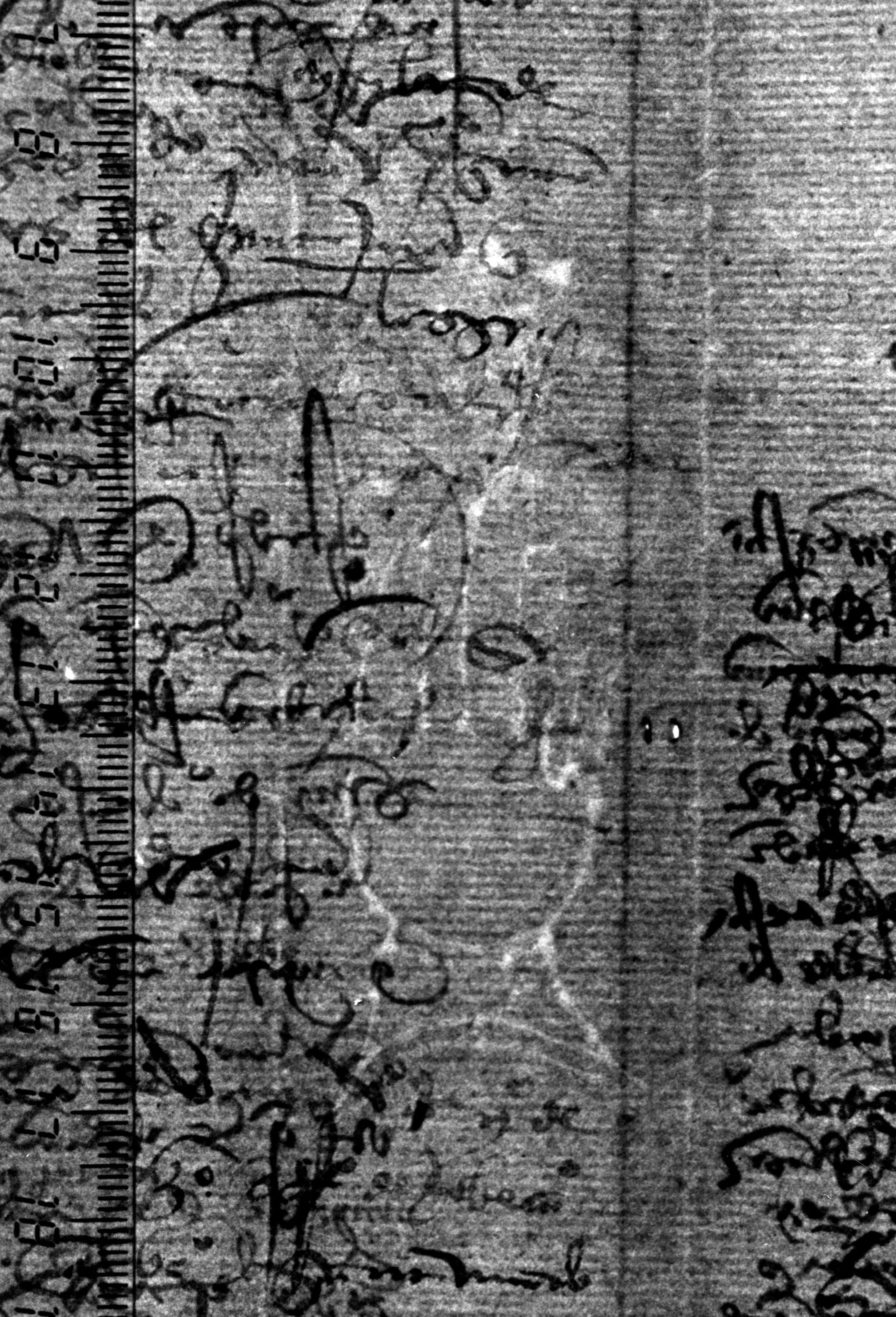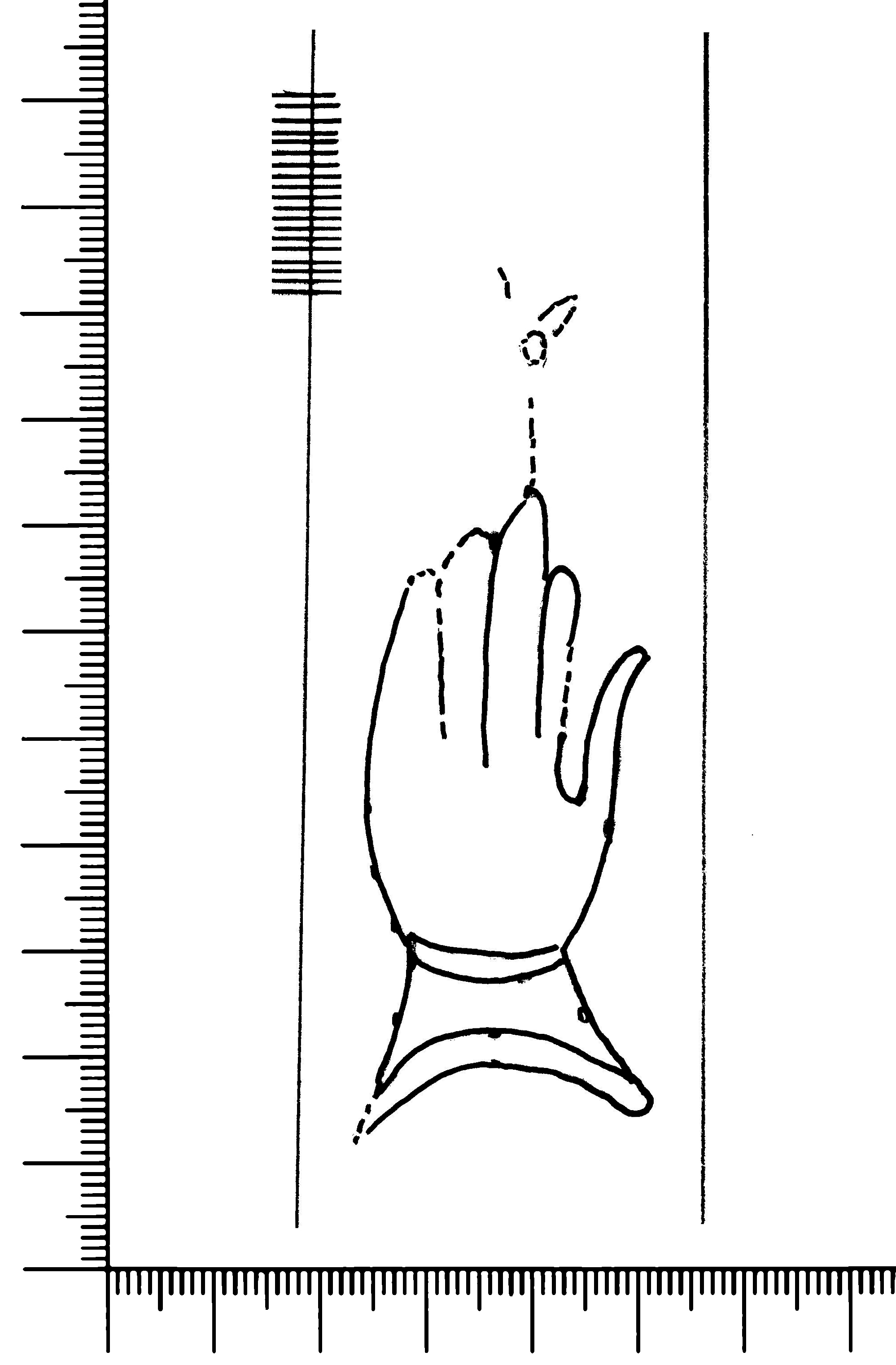 Tipo de filigrana: Sencilla Parte estudiada: Toda la filigrana Código del Motivo: B.02.02.03 Descripción: Mano con cuatro dedos juntos y pulgar separado. Encima flor de seis puntas. Estructura: Tradicional de líneas Altura (mm): 84 Anchura (mm): 30 Tipo de papel: Verjurado Posición en la hoja: Medio centro Nº de corondeles en la hoja: 6 Distancia entre corondeles: Situada entre el corondel 2 y el corondel 3 Posición en relación al texto: Perpendicular al texto hacia arriba Origen de los datos: Datos obtenidos del original Información adicional: Son visibles las puntadas que unen la filigrana a la verjura. Se ve muy mal la filigrana. Autor de los datos de este registro: María Dolores Díaz de Miranda Macías y Ana María Herrero Estado de la hoja: Cortado borde izquierdo Altura de la hoja: 312 Anchura de la hoja: 219 Color de la hoja: Natural Estado de conservación: Bueno pH del papel: 7,75 Institución: Archivo de la Catedral de Oviedo.