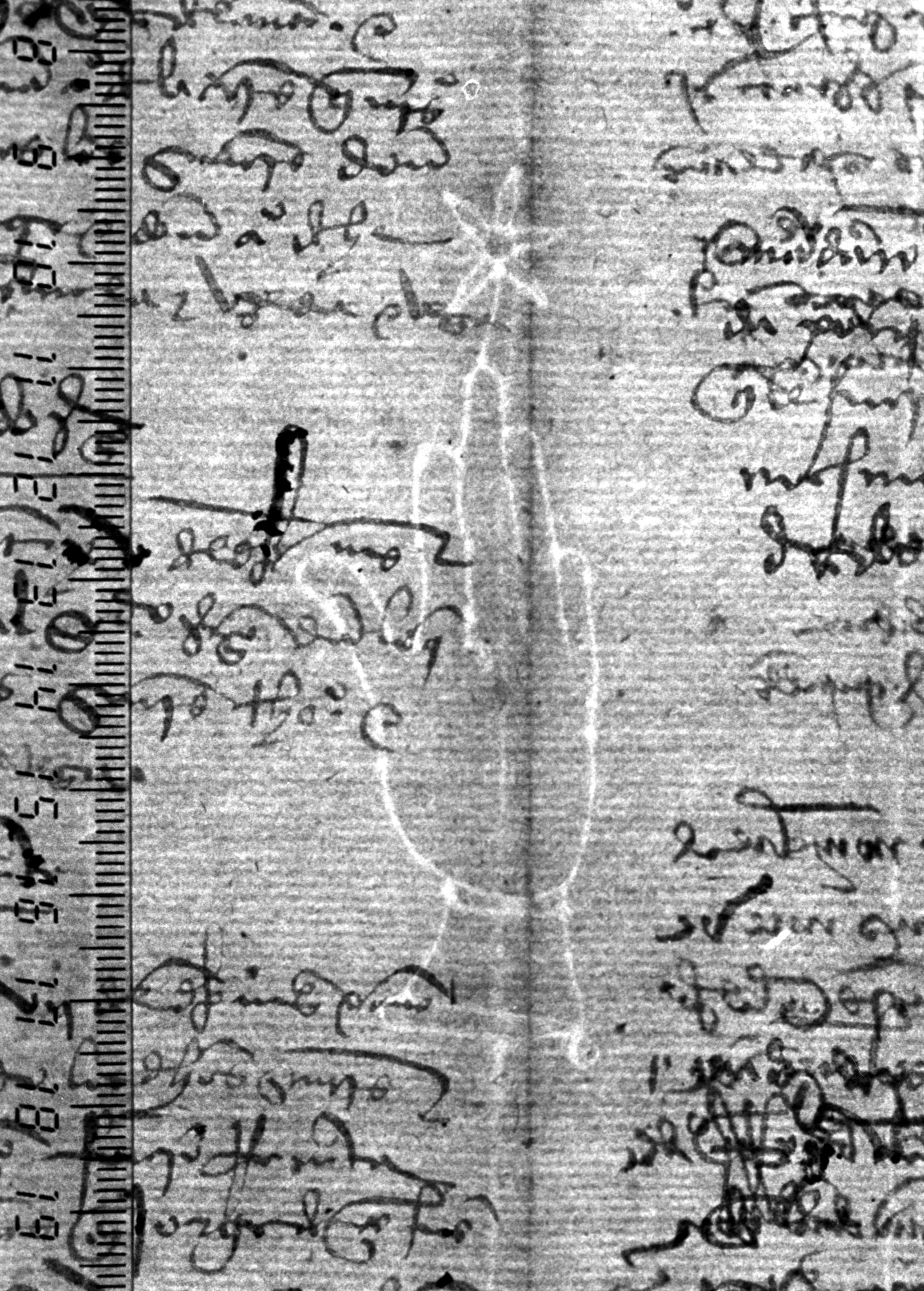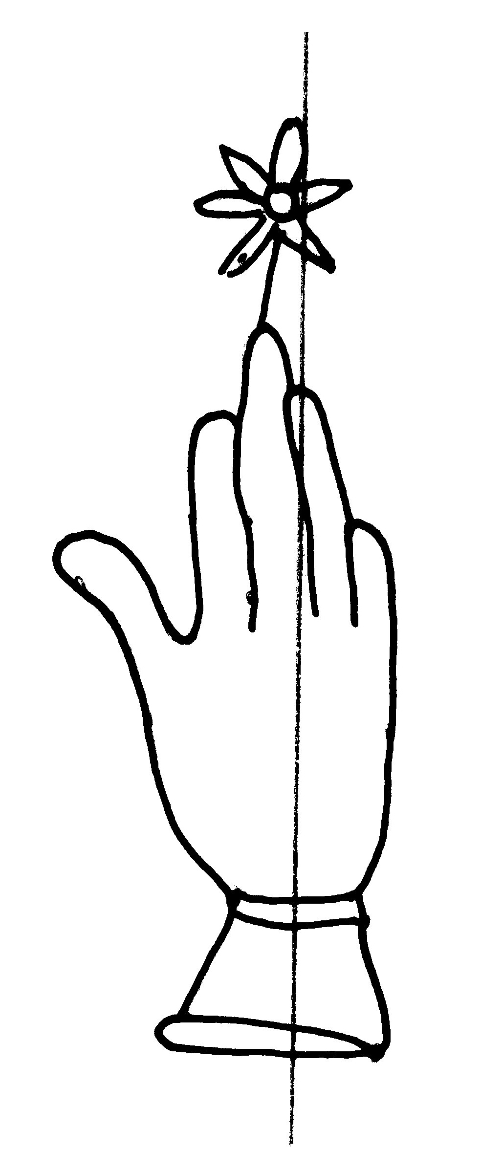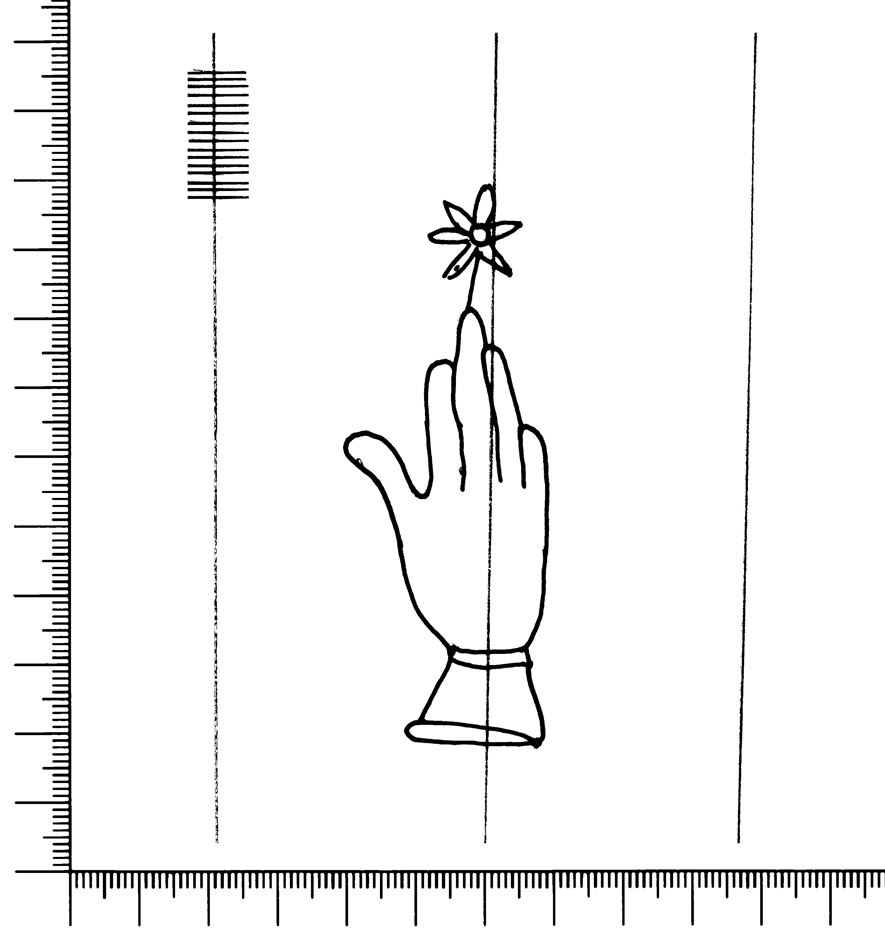 Tipo de filigrana: Sencilla Parte estudiada: Toda la filigrana Código del Motivo: B.02.02.03 Descripción: Mano con cuatro dedos juntos y pulgar separado. Encima flor de seis puntas. Estructura: Tradicional de líneas Altura (mm): 82 Anchura (mm): 28 Tipo de papel: Verjurado Posición en la hoja: Medio centro Nº de corondeles en la hoja: 6 Distancia entre corondeles: Situada entre el corondel 3 y el corondel 5 Posición en relación al texto: Perpendicular al texto hacia arriba Origen de los datos: Datos obtenidos del original Autor de los datos de este registro: María Dolores Díaz de Miranda Macías y Ana María Herrero Estado de la hoja: Cortado borde derecho Altura de la hoja: 313 Anchura de la hoja: 221 Color de la hoja: Natural Estado de conservación: Bueno pH del papel: 6,51 Institución: Archivo de la Catedral de Oviedo.