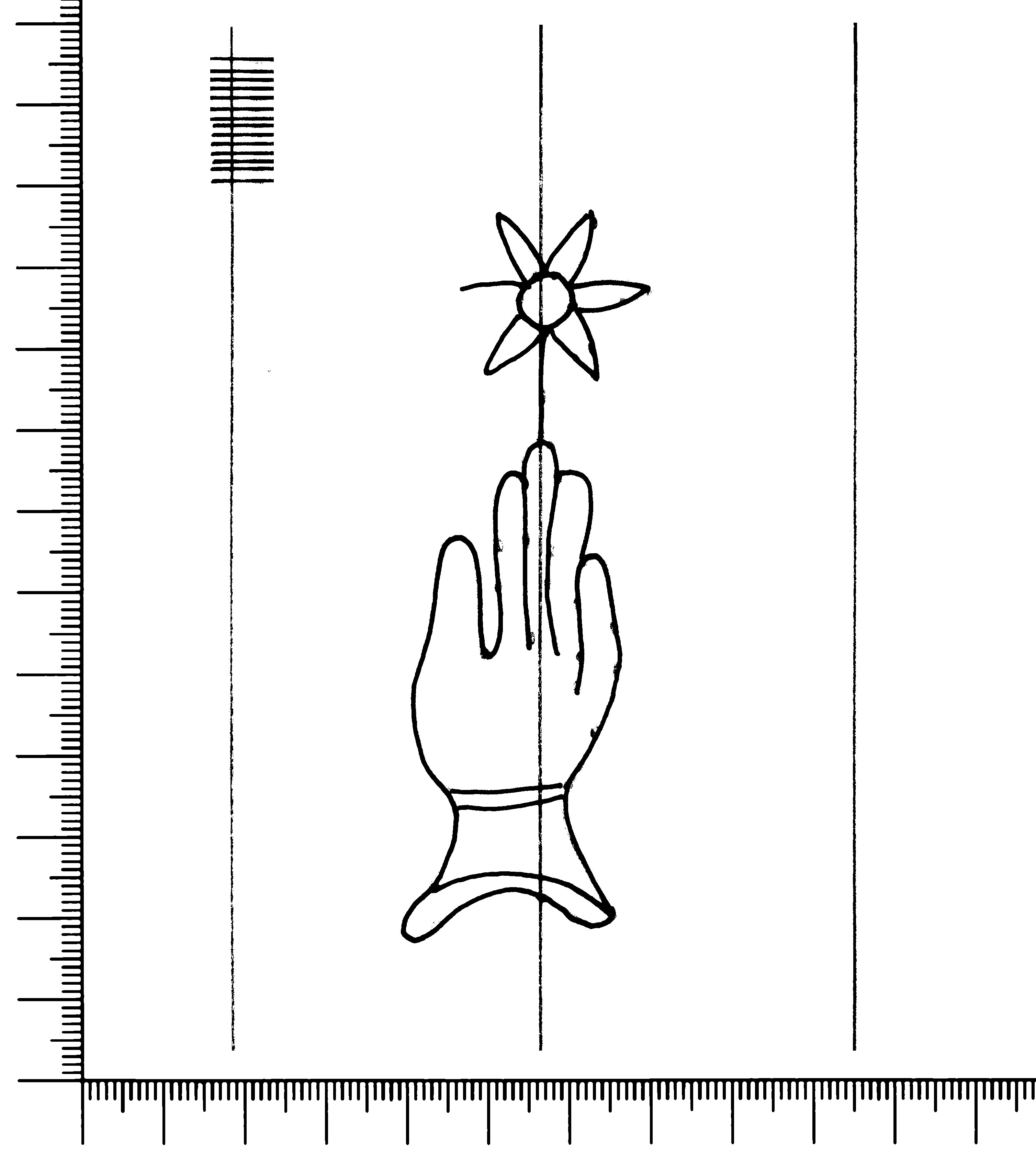 Tipo de filigrana: Sencilla Parte estudiada: Toda la filigrana Código del Motivo: B.02.02.03 Descripción: Mano con cuatro dedos juntos y pulgar separado. Encima flor de seis puntas.. Estructura: Tradicional de líneas Altura (mm): 91 Anchura (mm): 27 Tipo de papel: Verjurado Posición en la hoja: Medio centro Nº de corondeles en la hoja: 6 Distancia entre corondeles: Situada entre el corondel 2 y el corondel 4 Posición en relación al texto: Perpendicular al texto hacia arriba Origen de los datos: Datos obtenidos del original Información adicional: Se ven muy mal los corondeles. El corondel de apoyo es más grueso que los demás corondeles. Autor de los datos de este registro: María Dolores Díaz de Miranda Macías y Ana María Herrero Estado de la hoja: Cortado borde izquierdo Altura de la hoja: 310 Anchura de la hoja: 222 Color de la hoja: Natural Estado de conservación: Bueno pH del papel: 7,46 Institución: Archivo de la Catedral de Oviedo.