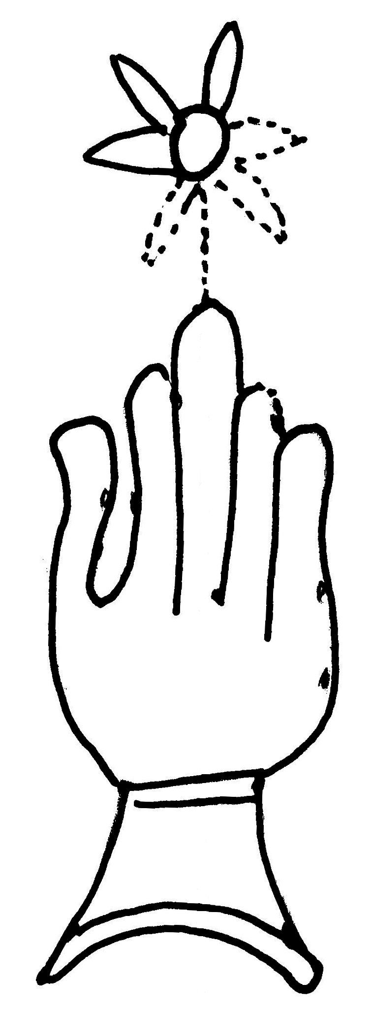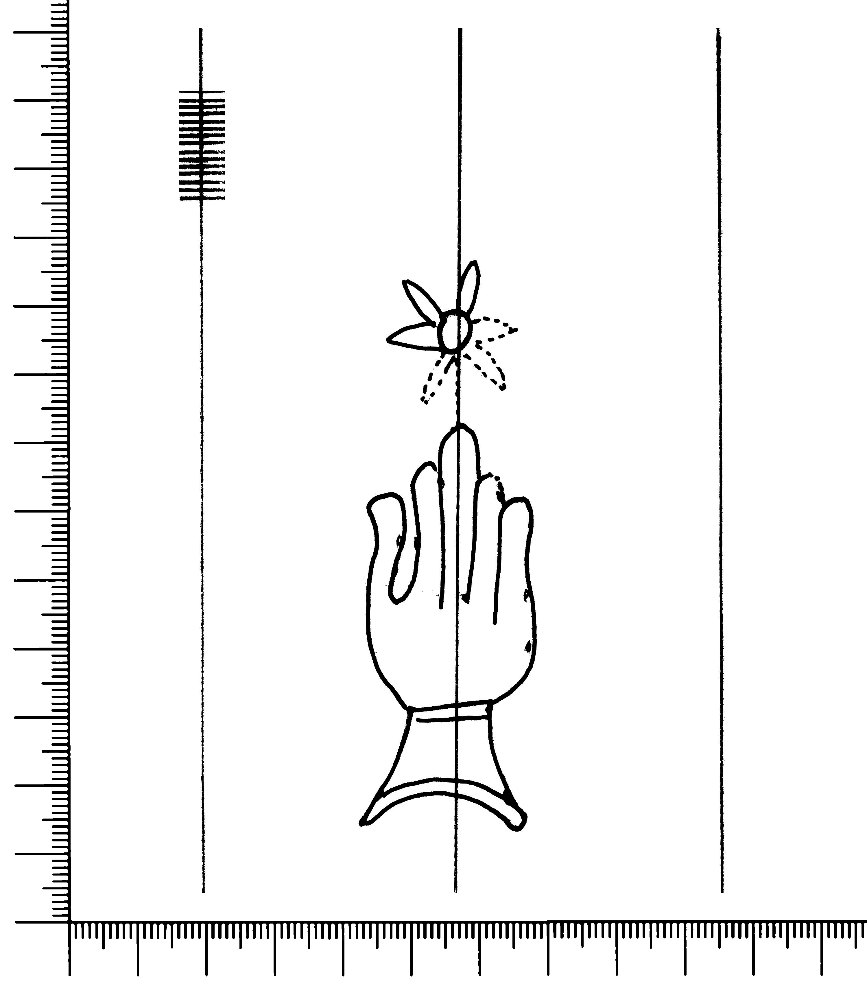 Tipo de filigrana: Sencilla Parte estudiada: Toda la filigrana Código del Motivo: B.02.02.03 Descripción: Mano con cuatro dedos juntos y pulgar separado. Encima flor de seis puntas. Estructura: Tradicional de líneas Altura (mm): 83 Anchura (mm): 25 Tipo de papel: Verjurado Posición en la hoja: Izquierda centro Nº de corondeles en la hoja: 7 Distancia entre corondeles: Situada entre el corondel 2 y el corondel 4 Posición en relación al texto: Perpendicular al texto hacia arriba Origen de los datos: Datos obtenidos del original Información adicional: Son visibles las puntadas que unen la filigrana a la verjura. El corondel de apoyo tiene puntadas distintas a las de los demás corondeles. Autor de los datos de este registro: María Dolores Díaz de Miranda Macías y Ana María Herrero Estado de la hoja: Cortado borde izquierdo Altura de la hoja: 314 Anchura de la hoja: 223 Color de la hoja: Natural Estado de conservación: Bueno pH del papel: 7,09 Institución: Archivo de la Catedral de Oviedo.