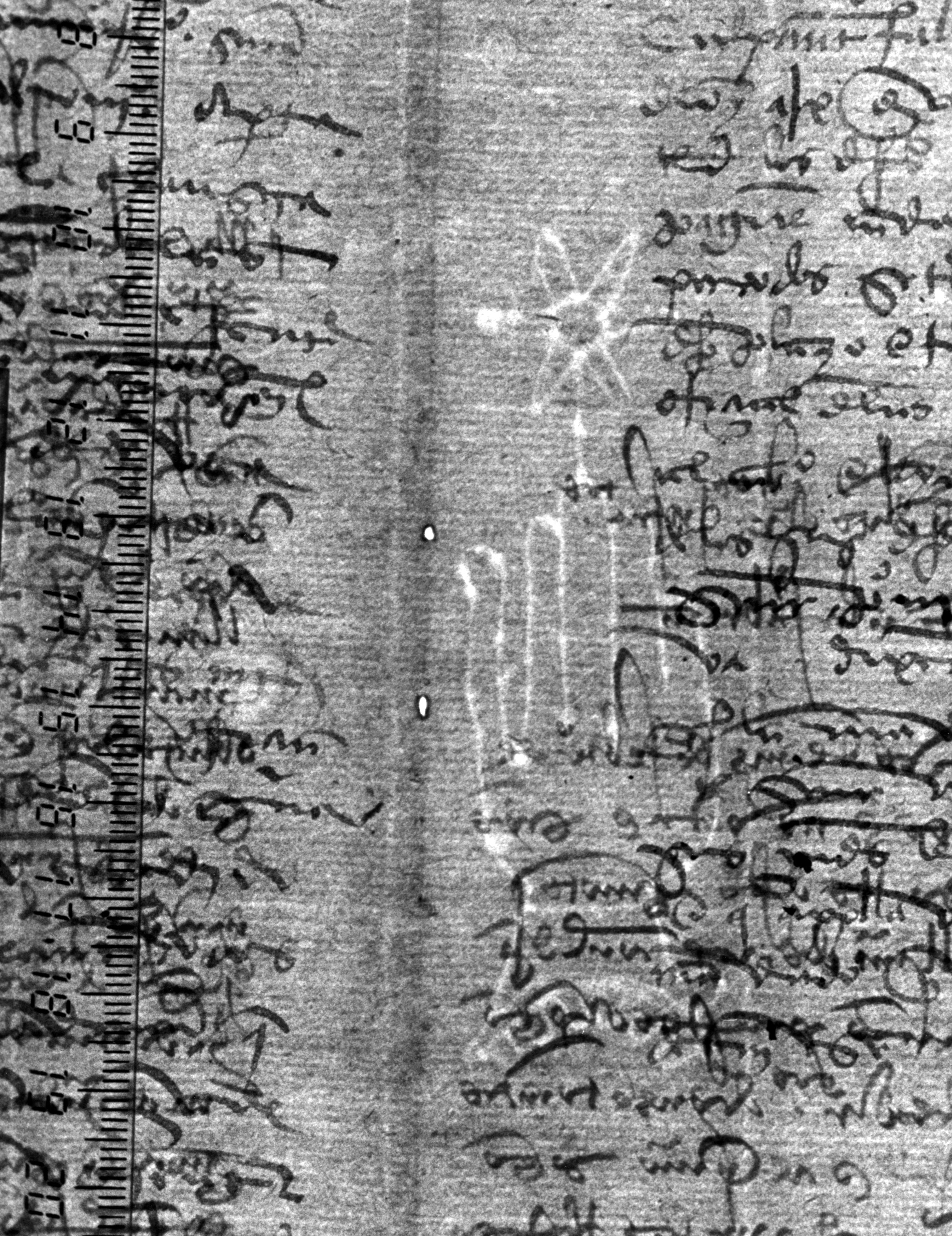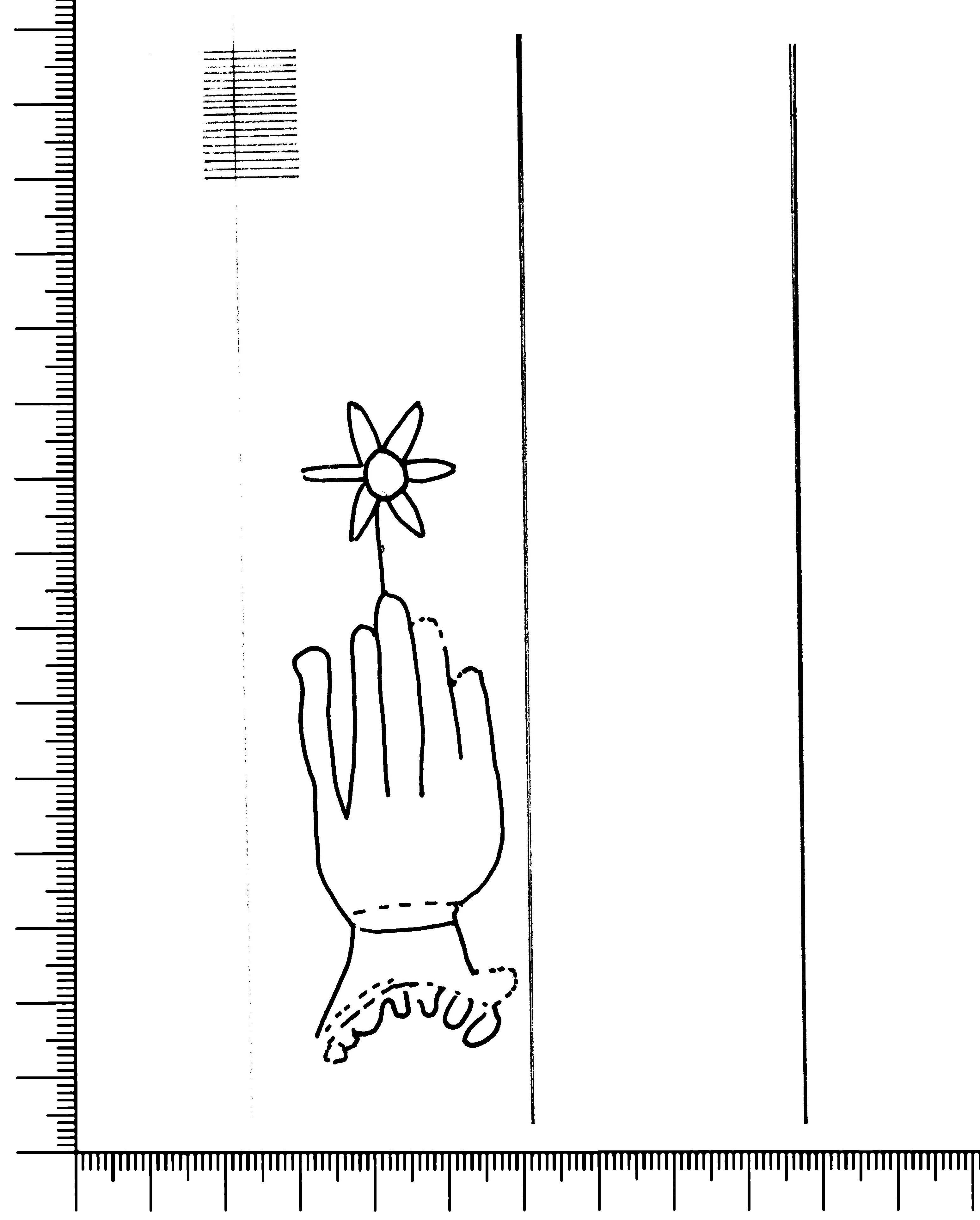 Tipo de filigrana: Sencilla Parte estudiada: Toda la filigrana Código del Motivo: B.02.07.02 Descripción: Mano con cuatro dedos juntos y pulgar separado. Con puño festoneado y encima flor de seis puntas. Estructura: Tradicional de líneas Altura (mm): 88 Anchura (mm): 27 Tipo de papel: Verjurado Posición en la hoja: Derecha centro Nº de corondeles en la hoja: 6 Distancia entre corondeles: Situada entre el corondel 4 y el corondel 5 Posición en relación al texto: Perpendicular al texto hacia arriba Origen de los datos: Datos obtenidos del original Información adicional: Son visibles las puntadas que unen la filigrana a la verjura. Se observan defectos o alteraciones del alambre en la huella dejada por la filigrana en el papel. Autor de los datos de este registro: María Dolores Díaz de Miranda Macías y Ana María Herrero Estado de la hoja: Cortado borde derecho Altura de la hoja: 311 Anchura de la hoja: 222 Color de la hoja: Natural Estado de conservación: Bueno pH del papel: 7,67 Institución: Archivo de la Catedral de Oviedo.