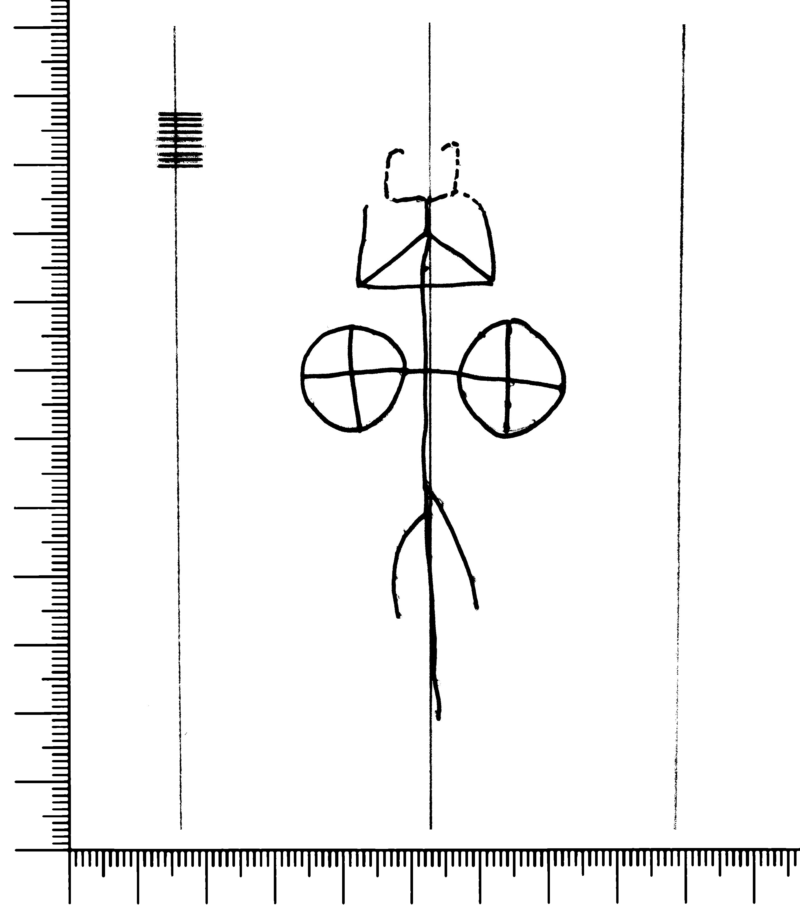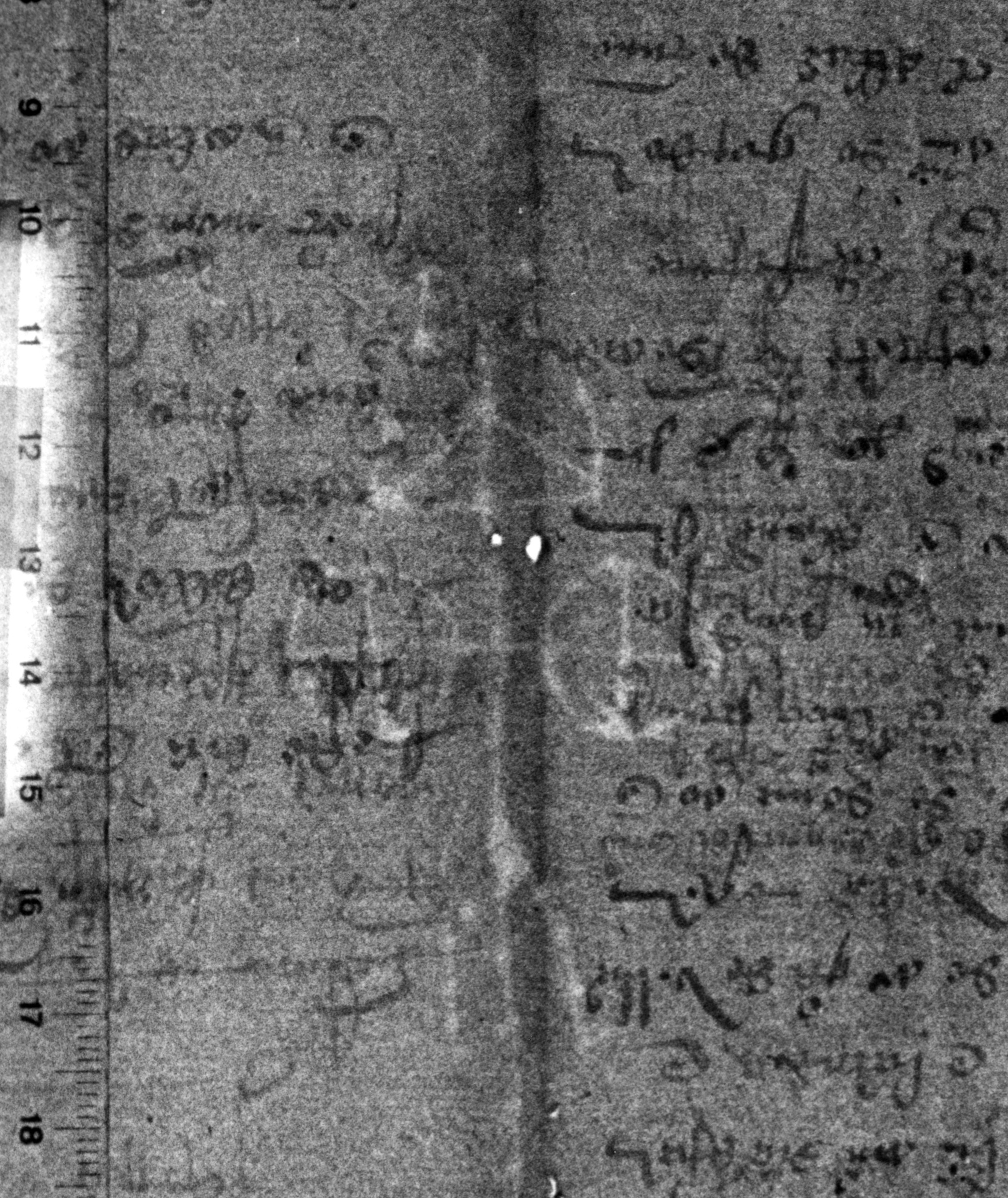 Tipo de filigrana: Sencilla Parte estudiada: Toda la filigrana Código del Motivo: L.01.01.01 Descripción: Carro con dos ruedas concuatro radios Estructura: Tradicional de líneas Altura (mm): 85 Anchura (mm): 38 Tipo de papel: Verjurado Posición en la hoja: Medio centro Nº de corondeles en la hoja: 6 Distancia entre corondeles: Situada entre el corondel 3 y el corondel 5 Posición en relación al texto: Perpendicular al texto hacia abajo Origen de los datos: Datos obtenidos del original Información adicional: Son visibles las puntadas que unen la filigrana a la verjura. Se observan defectos o alteraciones del alambre en la huella dejada por la filigrana en el papel. Se ve muy mal la verjura. No se distinguen los puntizones. Se acumula pulpa entre el corondel de apoyo y el borde externo de la hoja. Autor de los datos de este registro: María Dolores Díaz de Miranda Macías y Ana María Herrero Estado de la hoja: Cortado borde derecho Altura de la hoja: 306 Anchura de la hoja: 222 Color de la hoja: Natural Estado de conservación: Bueno pH del papel: 7,98 Institución: Archivo de la Catedral de Oviedo.