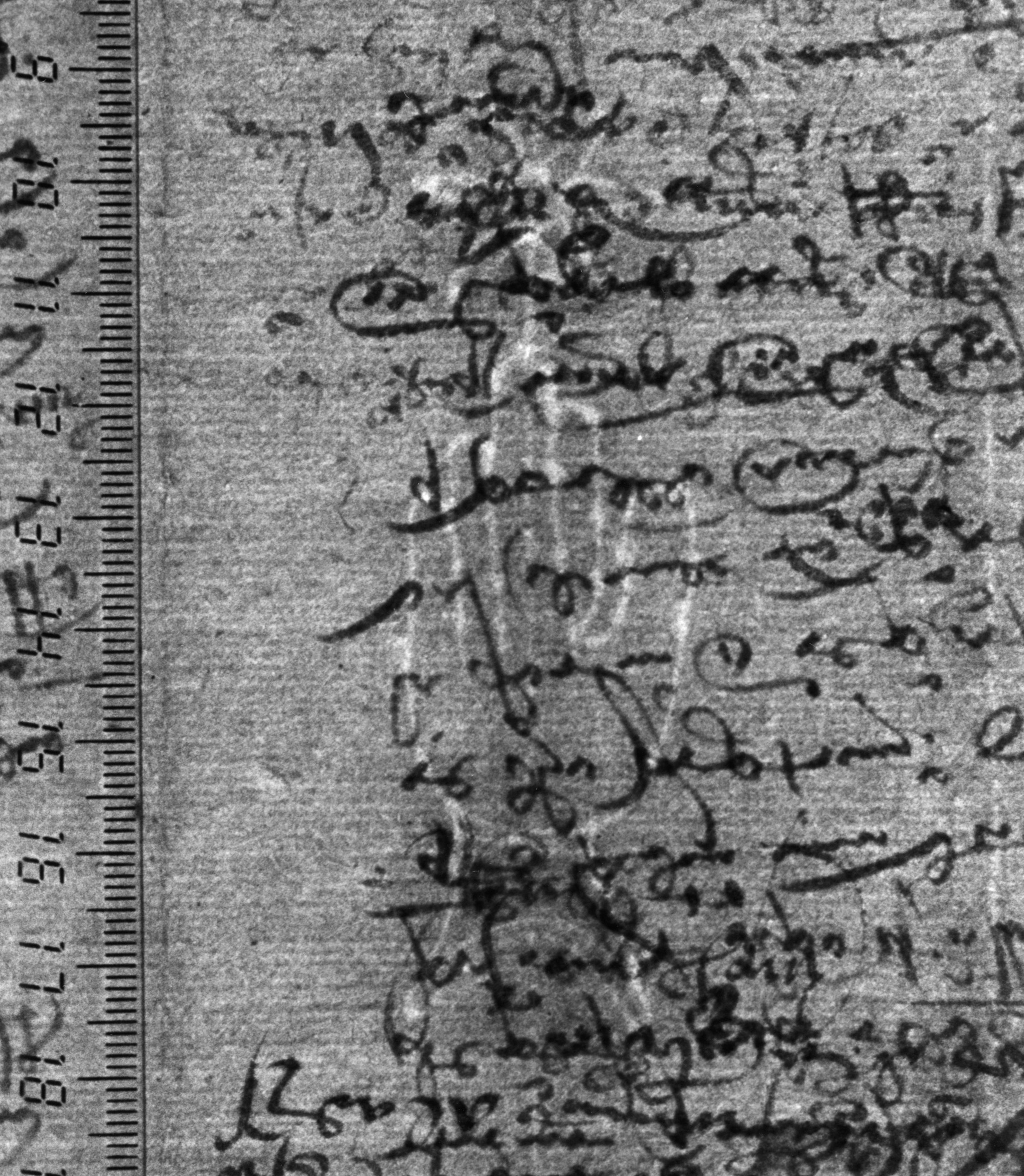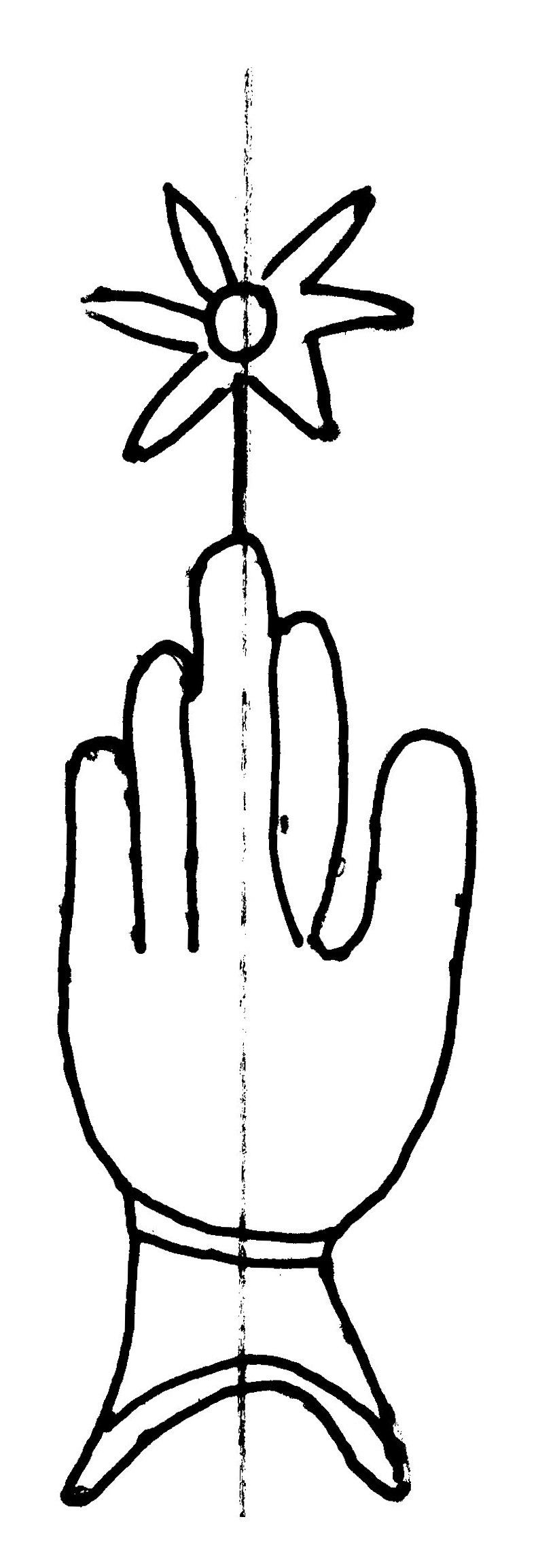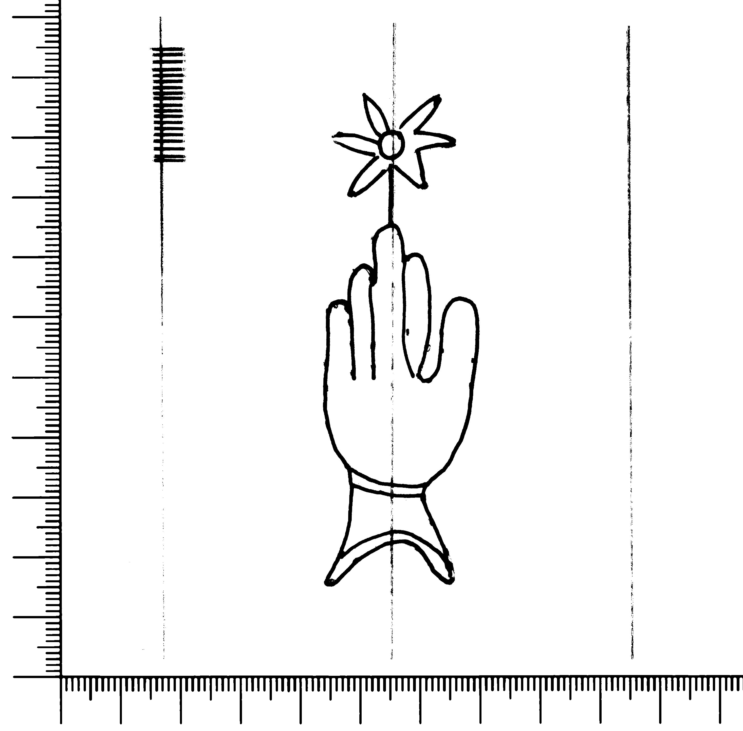 Tipo de filigrana: Sencilla Parte estudiada: Toda la filigrana Código del Motivo: B.02.02.03 Descripción: Mano con cuatro dedos juntos y pulgar separado. Encima flor de seis puntas. Estructura: Tradicional de líneas Altura (mm): 83 Anchura (mm): 25 Tipo de papel: Verjurado Posición en la hoja: Derecha centro Nº de corondeles en la hoja: 6 Distancia entre corondeles: Situada entre el corondel 4 y el corondel 6 Posición en relación al texto: Perpendicular al texto hacia abajo Origen de los datos: Datos obtenidos del original Información adicional: Son visibles las puntadas que unen la filigrana a la verjura. Se observan defectos o alteraciones del alambre en la huella dejada por la filigrana en el papel. Se ve muy mal la flor de la filigrana. Se acumula pulpa entre el corondel de apoyo y el borde externo de la hoja. Autor de los datos de este registro: María Dolores Díaz de Miranda Macías y Ana María Herrero Estado de la hoja: Cortado borde derecho Altura de la hoja: 312 Anchura de la hoja: 223 Color de la hoja: Natural Estado de conservación: Bueno pH del papel: 7,32 Institución: Archivo de la Catedral de Oviedo.