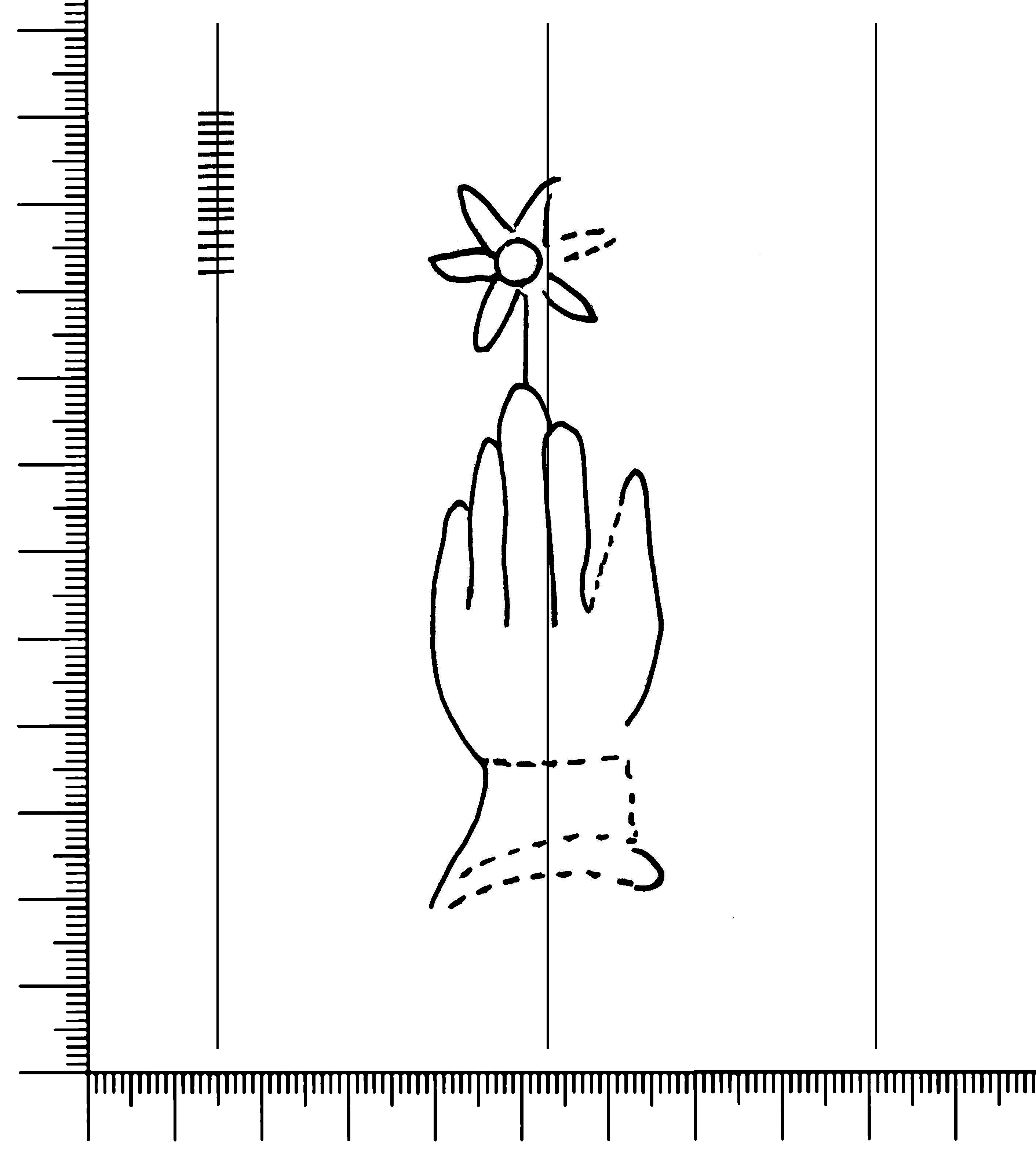 Tipo de filigrana: Sencilla Parte estudiada: Toda la filigrana Código del Motivo: B.02.02.03 Descripción: Mano con cuatro dedos juntos y pulgar separado. Encima flor de seis puntas Estructura: Tradicional de líneas Altura (mm): 86 Anchura (mm): 27 Tipo de papel: Verjurado Posición en la hoja: Medio centro Nº de corondeles en la hoja: 6 Distancia entre corondeles: Situada entre el corondel 3 y el corondel 5 Posición en relación al texto: Perpendicular al texto hacia abajo Origen de los datos: Datos obtenidos del original Información adicional: Son visibles las puntadas que unen la filigrana a la verjura. Falta papel en la zona de la filigrana. Apenas se aprecian los corondeles. Autor de los datos de este registro: María Dolores Díaz de Miranda Macías y Ana María Herrero Estado de la hoja: Cortado borde derecho Altura de la hoja: 313 Anchura de la hoja: 225 Color de la hoja: Natural Estado de conservación: Regular pH del papel: 7,27 Institución: Archivo de la Catedral de Oviedo.