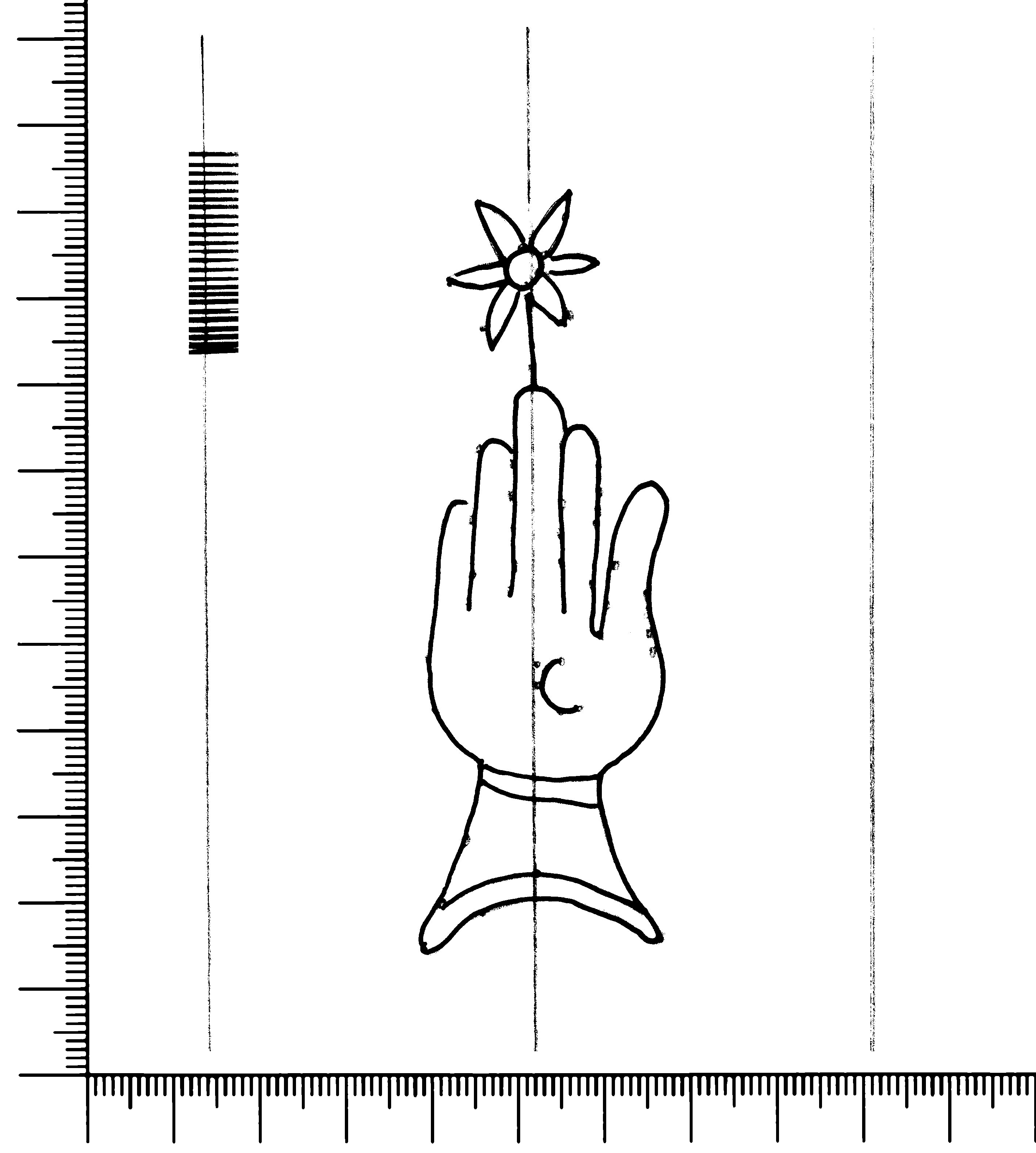Tipo de filigrana: Sencilla Parte estudiada: Toda la filigrana Código del Motivo: B.02.04.02 Descripción: Mano con cuatro dedos juntos y pulgar separado. Encima flor de seis punta y dentro la letra C Estructura: Tradicional de líneas Altura (mm): 89 Anchura (mm): 30 Tipo de papel: Verjurado Posición en la hoja: Medio centro Nº de corondeles en la hoja: 6 Distancia entre corondeles: Situada entre el corondel 2 y el corondel 4 Posición en relación al texto: Perpendicular al texto hacia arriba Origen de los datos: Datos obtenidos del original Información adicional: Son visibles las puntadas que unen la filigrana a la verjura. Se ve muy nítida la verjura, en cambio, la filigrana se ve más nítida por la otra cara. Se ven mal los corondeles. Autor de los datos de este registro: María Dolores Díaz de Miranda Macías y Ana María Herrero Estado de la hoja: Cortado borde izquierdo Altura de la hoja: 315 Anchura de la hoja: 220 Color de la hoja: Natural Estado de conservación: Malo pH del papel: 7,66 (oscila) Institución: Archivo de la Catedral de Oviedo.
