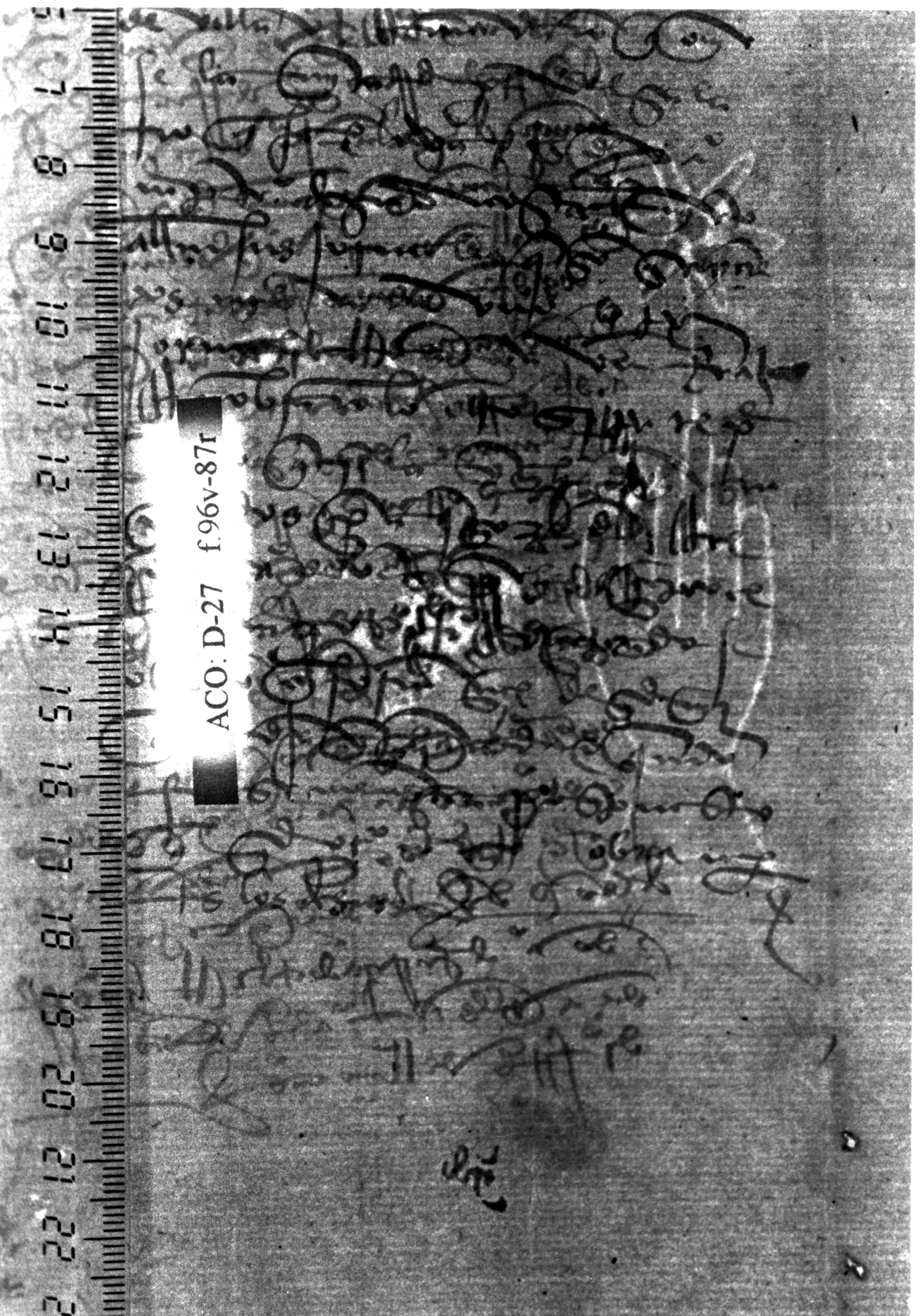 Signatura: D-27 Nº de folio o página: 96v-87r País de uso del papel: España Lugar de uso del papel: Oviedo, Asturias. Fecha de uso del papel (año): [1/2 s.XV] Última fecha de uso del papel (año): [1/4 s. XV] Modo de datación: Sin fecha, ni posibilidad de estimarla Título/Resumen: Libro de Acuerdos Capitulares de la Catedral de Oviedo. | |