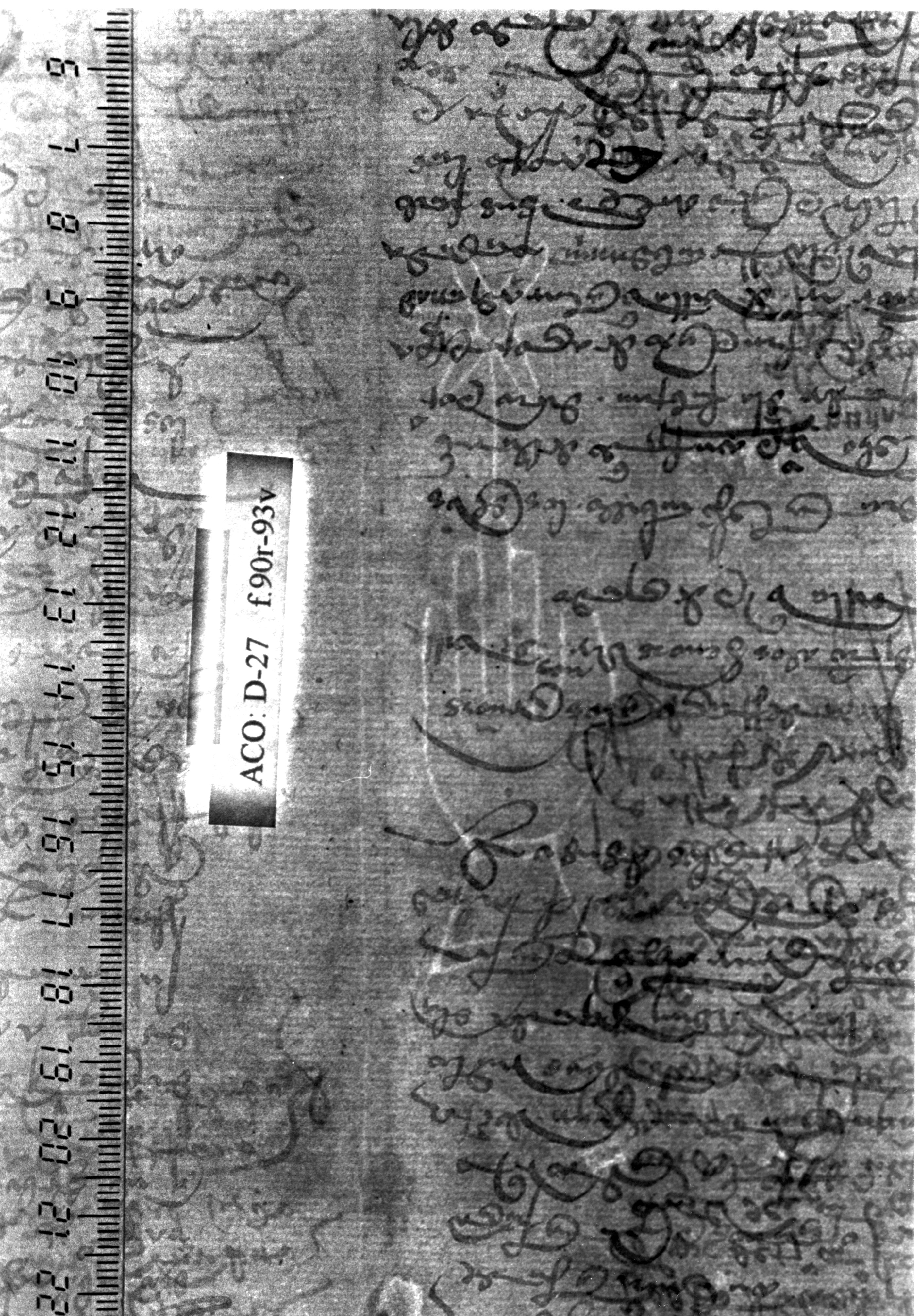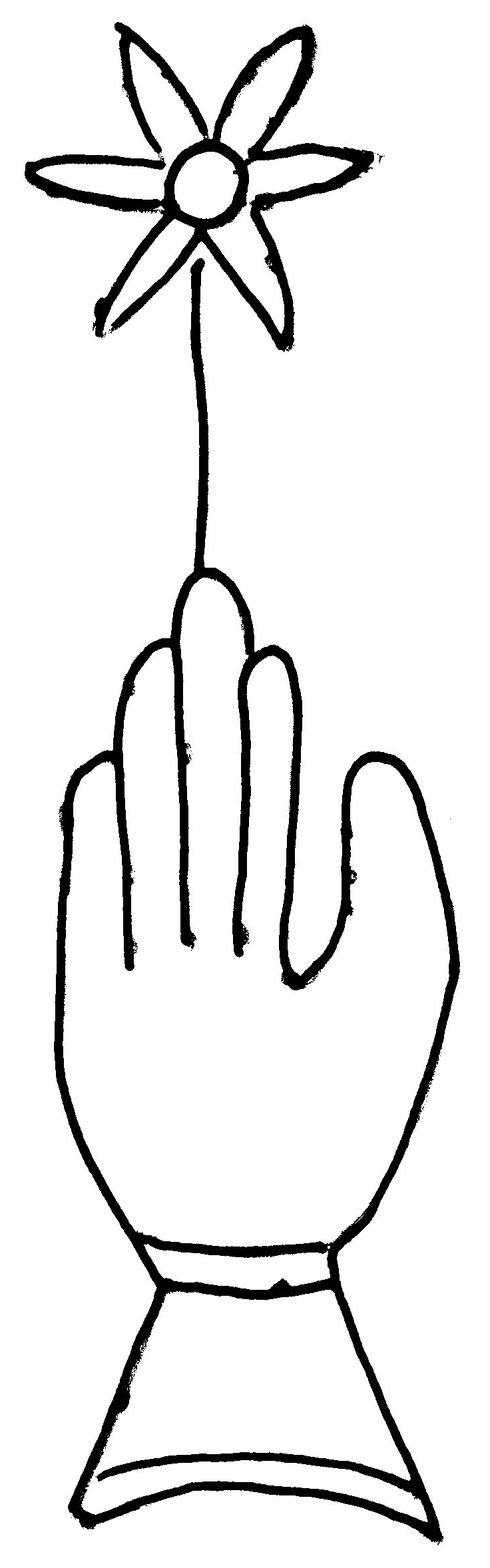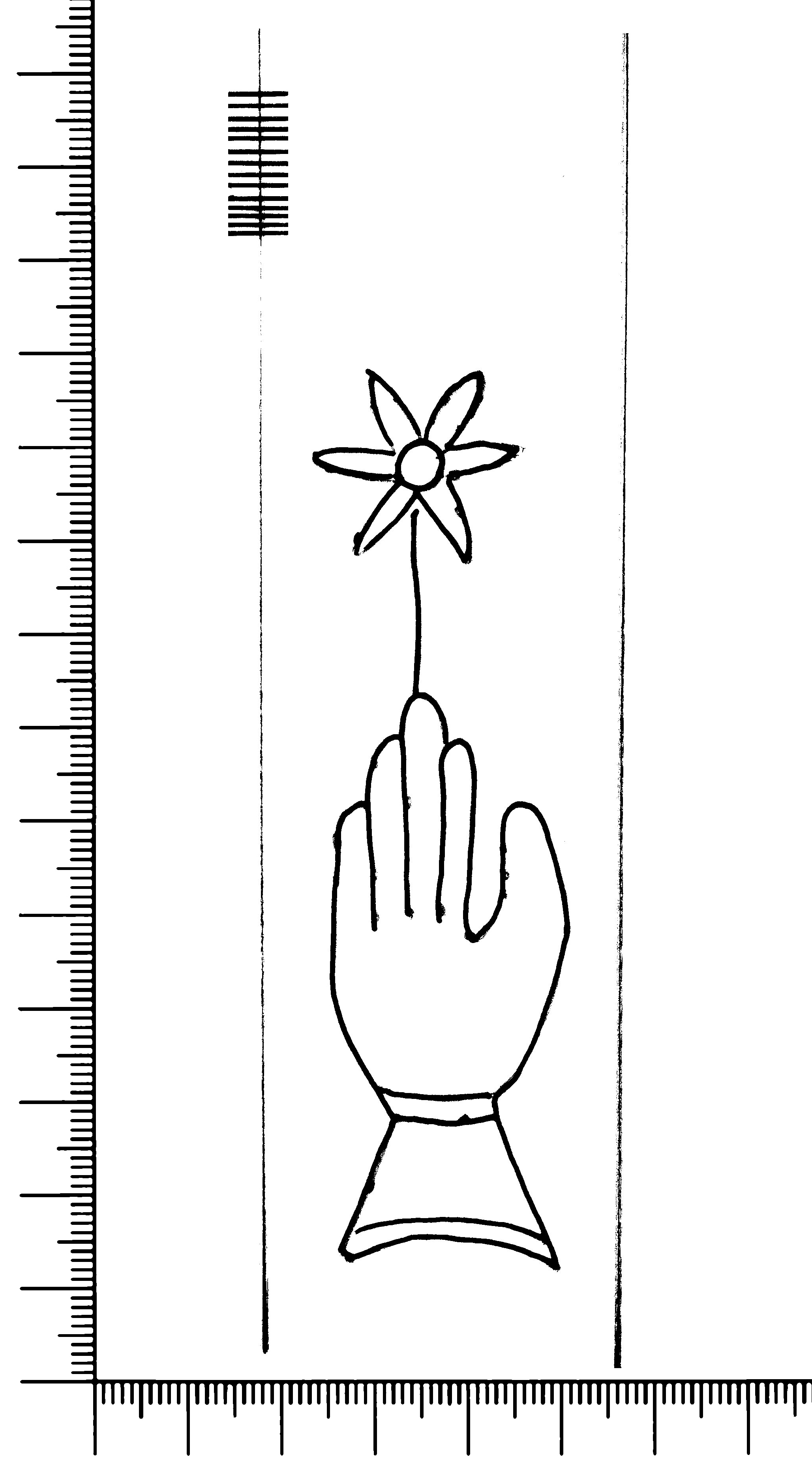 Tipo de filigrana: Sencilla Parte estudiada: Toda la filigrana Código del Motivo: B.02.02.03 Descripción: Mano con cuatro dedos juntos y pulgar separado. Encima flor de seis puntas Estructura: Tradicional de líneas Altura (mm): 98 Anchura (mm): 25 Tipo de papel: Verjurado Posición en la hoja: Derecha centro Nº de corondeles en la hoja: 6 Distancia entre corondeles: Situada entre el corondel 4 y el corondel 5 Posición en relación al texto: Perpendicular al texto hacia abajo Origen de los datos: Datos obtenidos del original Información adicional: Son visibles las puntadas que unen la filigrana a la verjura. Se ven muy mal los corondeles. Autor de los datos de este registro: María Dolores Díaz de Miranda Macías y Ana María Herrero Estado de la hoja: Cortado borde derecho Altura de la hoja: 309 Anchura de la hoja: 226 Color de la hoja: Natural Estado de conservación: Malo pH del papel: 7,56 7,26 7,76 (oscila con varias mediciones) Institución: Archivo de la Catedral de Oviedo.