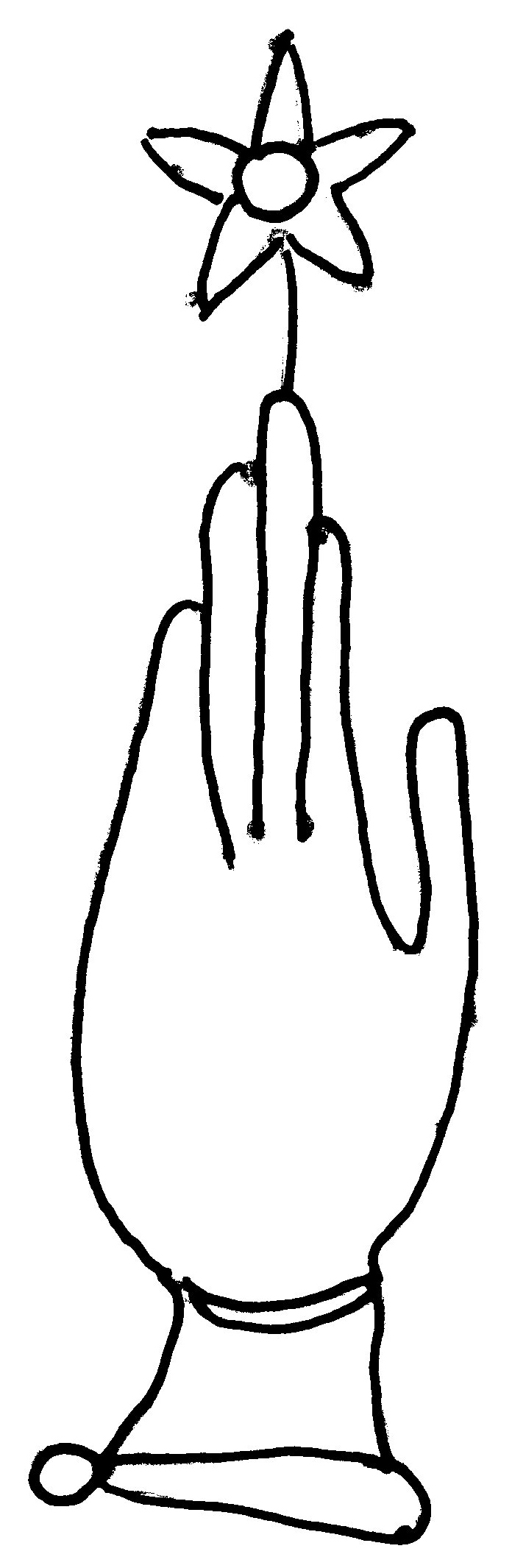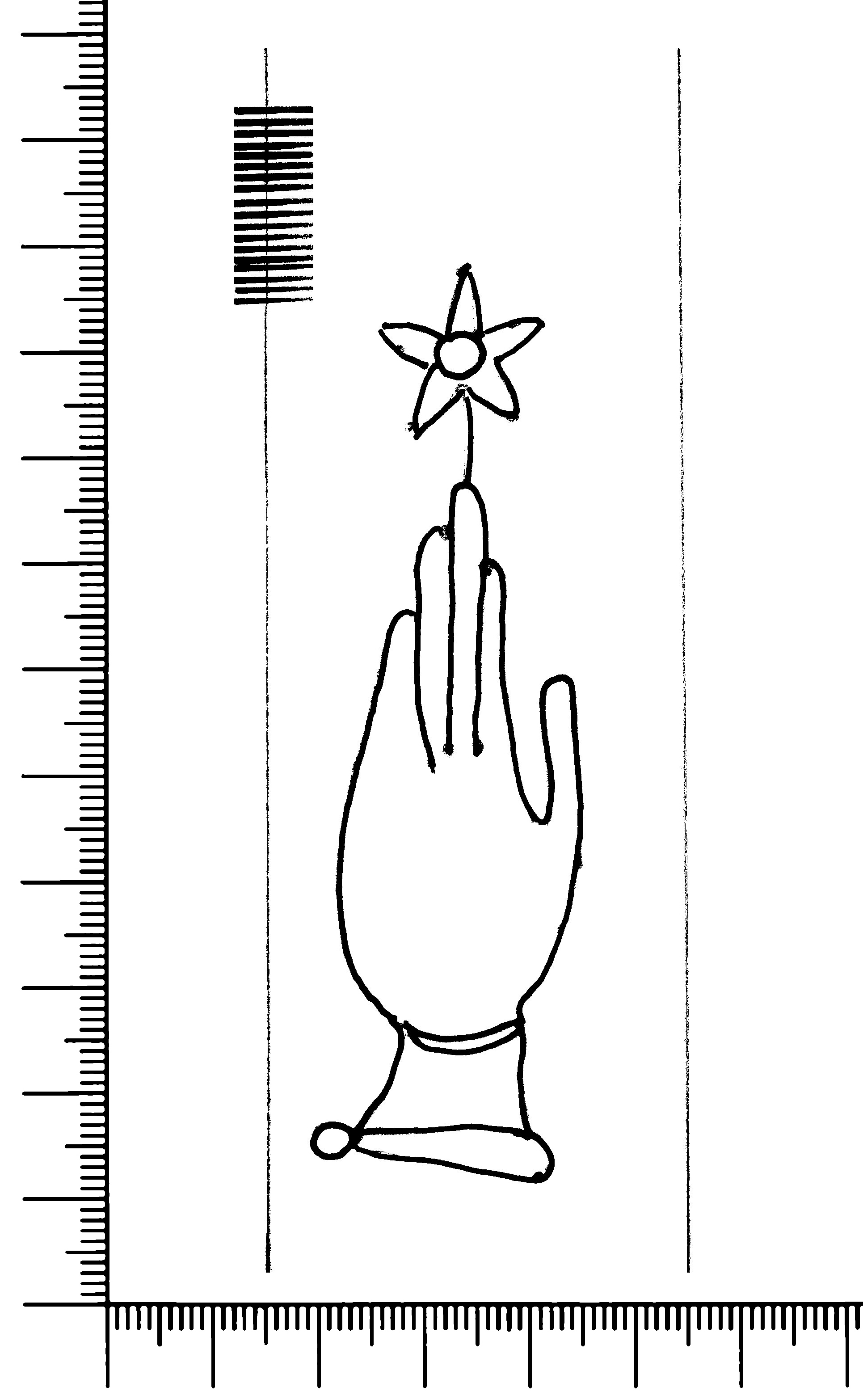 Tipo de filigrana: Sencilla Parte estudiada: Toda la filigrana Código del Motivo: B.02.02.03 Descripción: Mano con cuatro dedos juntos y pulgar separado. Encima flor de cinco puntas Estructura: Tradicional de líneas Altura (mm): 86 Anchura (mm): 24 Tipo de papel: Verjurado Posición en la hoja: Derecha centro Nº de corondeles en la hoja: 6 Distancia entre corondeles: Situada entre el corondel 4 y el corondel 5 Posición en relación al texto: Perpendicular al texto hacia abajo Origen de los datos: Datos obtenidos del original Información adicional: Son visibles las puntadas que unen la filigrana a la verjura. Se distingue muy mal la filigrana. Se acumula pulpa entre el corondel de apoyo y el borde externo de la hoja. Autor de los datos de este registro: María Dolores Díaz de Miranda Macías y Ana María Herrero Estado de la hoja: Cortado borde derecho Altura de la hoja: 307 Anchura de la hoja: 218 Color de la hoja: Natural Estado de conservación: Bueno pH del papel: 7,13 (oscila) Institución: Archivo de la Catedral de Oviedo.
