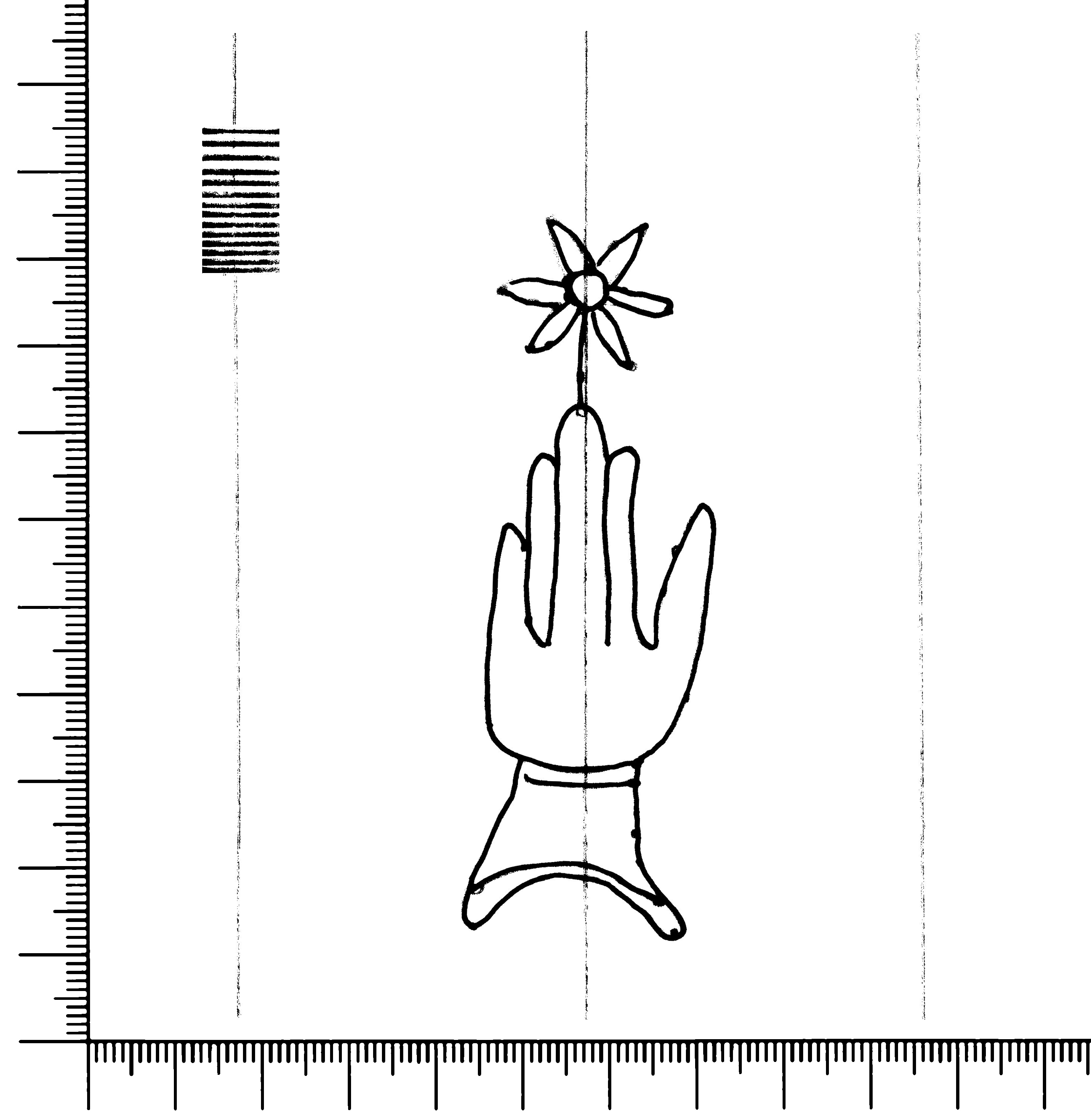 Tipo de filigrana: Sencilla Parte estudiada: Toda la filigrana Código del Motivo: B.02.02.03 Descripción: Mano con cuatro dedos juntos y pulgar separado. Encima flor de seis puntas Estructura: Tradicional de líneas Altura (mm): 84 Anchura (mm): 30 Tipo de papel: Verjurado Posición en la hoja: Medio centro Nº de corondeles en la hoja: 6 Distancia entre corondeles: Situada entre el corondel 2 y el corondel 4 Posición en relación al texto: Perpendicular al texto hacia arriba Origen de los datos: Datos obtenidos del original Información adicional: Son visibles las puntadas que unen la filigrana a la verjura. Autor de los datos de este registro: María Dolores Díaz de Miranda Macías y Ana María Herrero Estado de la hoja: Cortado borde izquierdo Altura de la hoja: 313 Anchura de la hoja: 225 Color de la hoja: Natural Estado de conservación: Bueno pH del papel: 8,20 Institución: Archivo de la Catedral de Oviedo.