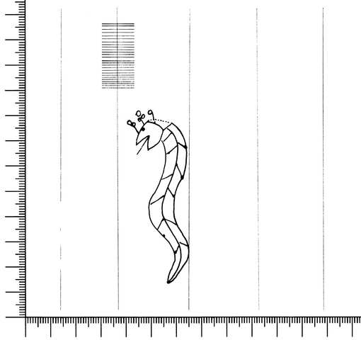 Tipo de filigrana: Sencilla Parte estudiada: Toda la filigrana Código del Motivo: E.02.01.02 Descripción: Serpiente ondulada y coronada. Estructura: Tradicional de líneas Altura (mm): 70 Anchura (mm): 24 Tipo de papel: Verjurado Posición en la hoja: Izquierda centro Nº de corondeles en la hoja: 15 Distancia entre corondeles: Situada entre el corondel 2 y el corondel 3 Posición en relación al texto: Perpendicular al texto hacia abajo Origen de los datos: Datos obtenidos del original Información adicional: Son visibles las puntadas que unen la filigrana a la verjura. Cada cuatro o cinco puntizones se nota en el corondel una puntada. Las puntadas de los corondeles de apoyo son distintas a las de los demás corondeles. Estado de la hoja: Cortado borde izquierdo Altura de la hoja: 280 Anchura de la hoja: 398 Color de la hoja: Natural Estado de conservación: Regular pH del papel: 5,72 (oscila) Institución: RIDEA