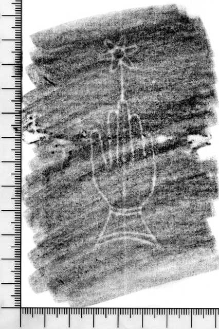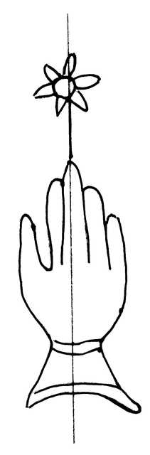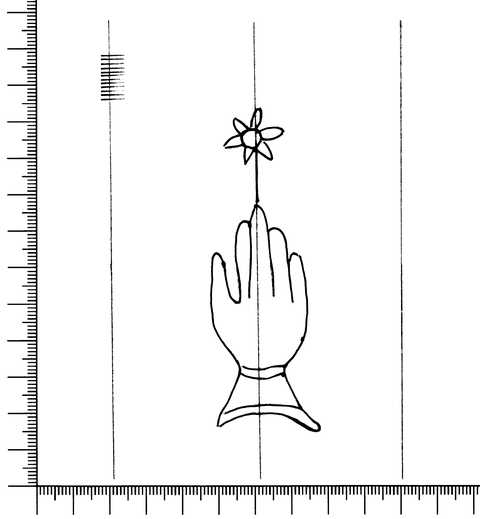 Tipo de filigrana: Sencilla Parte estudiada: Toda la filigrana Código del Motivo: B.02.02.03 Descripción: Mano con flor. Estructura: Tradicional de líneas Altura (mm): 90 Anchura (mm): 29 Tipo de papel: Verjurado Posición en la hoja: Medio centro Nº de corondeles en la hoja: 6 Distancia entre corondeles: Situada entre el corondel 2 y el corondel 4 Posición en relación al texto: Paralelo al texto en el mismo sentido Origen de los datos: Datos obtenidos del original Información adicional: Son visibles las puntadas que unen la filigrana a la verjura. Prácticamente no se ve el corondel de apoyo derecho. Las puntadas del corondel de apoyo son distintas a las de los demás corondeles. Se acumula pulpa entre el corondel de apoyo y el borde externo de la hoja. Autor de los datos de este registro: María Dolores Díaz de Miranda Macías Tipo de uso: Papel para escribir Estado de la hoja: Cortado borde izquierdo Altura de la hoja: 312 Anchura de la hoja: 224 Color de la hoja: Natural Estado de conservación: Regular pH del papel: 7,76 (oscila) Indicador de pH: Indicador universal Institución: RIDEA