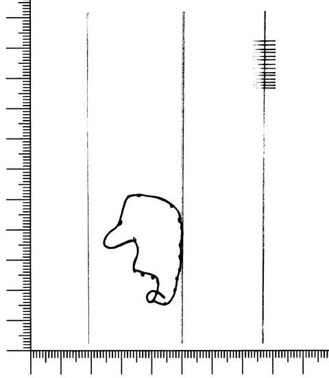 Tipo de filigrana: Sencilla Parte estudiada: Toda la filigrana Código del Motivo: A.02.01.00 Descripción: Cabeza de hombre. Estructura: Tradicional de líneas Altura (mm): 37 Anchura (mm): 26 Tipo de papel: Verjurado Posición en la hoja: Medio centro Nº de corondeles en la hoja: 8 Distancia entre corondeles: Situada entre el corondel 4 y el corondel 5 Posición en relación al texto: Paralelo al texto en el mismo sentido Origen de los datos: Datos obtenidos del original Información adicional: Son visibles las puntadas que unen la filigrana a la verjura. Se acumula pulpa entre el corondel de apoyo y el borde externo de la hoja. Autor de los datos de este registro: María Dolores Díaz de Miranda Macías y Ana María Herrero Montero Tipo de uso: Papel para escribir Estado de la hoja: Cortado borde derecho Altura de la hoja: 302 Anchura de la hoja: 214 Color de la hoja: Natural Estado de conservación: Regular pH del papel: 6,36 (oscila) Indicador de pH: Indicador universal Institución: RIDEA