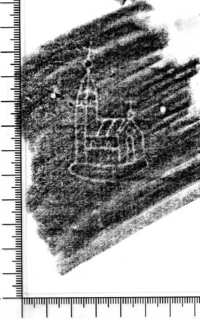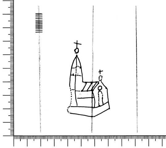 Tipo de filigrana: Sencilla Parte estudiada: Toda la filigrana Código del Motivo: K.05.01.00 Descripción: Iglesia. Estructura: Tradicional de líneas Altura (mm): 57 Anchura (mm): 32 Tipo de papel: Verjurado Posición en la hoja: Izquierda centro Nº de corondeles en la hoja: 14 Distancia entre corondeles: Situada entre el corondel 4 y el corondel 6 Posición en relación al texto: Perpendicular al texto hacia arriba Origen de los datos: Datos obtenidos del original Información adicional: Son visibles las puntadas que unen la filigrana a la verjura. Se ven muy mal los corondeles, los puntizones y la filigrana. Autor de los datos de este registro: María Dolores Díaz de Miranda Macías y Ana María Herrero Montero Tipo de uso: Papel para escribir Estado de la hoja: Cortados todos los bordes Altura de la hoja: 310 Anchura de la hoja: 446 Color de la hoja: Natural Estado de conservación: Regular pH del papel: 7,06 Indicador de pH: Indicador universal Información adicional: En el peso, tener en cuenta que falta papel. Institución: RIDEA