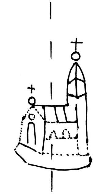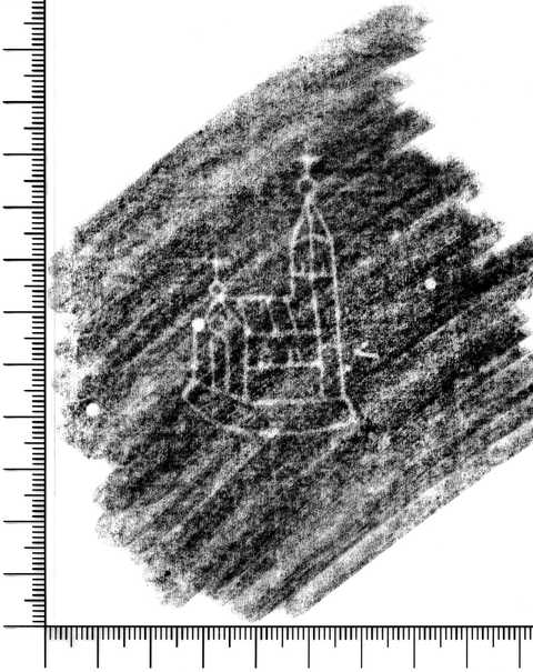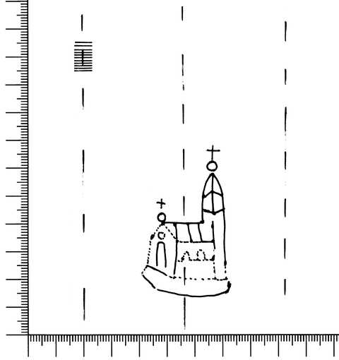 Tipo de filigrana: Sencilla Parte estudiada: Toda la filigrana Código del Motivo: K.05.01.00 Descripción: Iglesia. Estructura: Tradicional de líneas Altura (mm): 55 Anchura (mm): 31 Tipo de papel: Verjurado Posición en la hoja: Derecha centro Nº de corondeles en la hoja: 14 Distancia entre corondeles: Situada entre el corondel 9 y el corondel 11 Posición en relación al texto: Perpendicular al texto hacia arriba Origen de los datos: Datos obtenidos del original Información adicional: Son visibles las puntadas que unen la filigrana a la verjura. Se ven muy mal los corondeles, los puntizones y la filigrana. Casi no se ve el corondel de apoyo. Autor de los datos de este registro: María Dolores Díaz de Miranda Macías y Ana María Herrero Montero Tipo de uso: Papel para escribir Estado de la hoja: Cortados todos los bordes Altura de la hoja: 310 Anchura de la hoja: 450 Color de la hoja: Natural Estado de conservación: Regular pH del papel: 6,73 (oscila) Indicador de pH: Indicador universal Institución: RIDEA