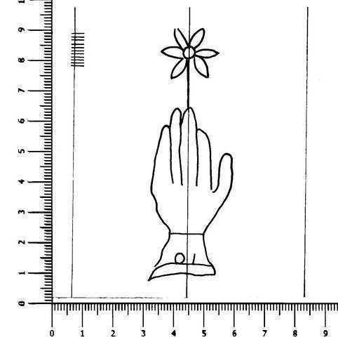 Tipo de filigrana: Sencilla Parte estudiada: Toda la filigrana Código del Motivo: B.02.04.05 Descripción: Mano con cinco dedos, el pulgar ligeramente separado, sobre el dedo medio una flor de seis pétalos y en el manguito las iniciales OI Estructura: Tradicional de líneas Altura (mm): 84 Anchura (mm): 29 Tipo de papel: Verjurado Posición en la hoja: Izquierda centro Nº de corondeles en la hoja: 12 Distancia entre corondeles: 5-18-39-(39)-(39)-40-37-39-40-39-39-37-16 Situada entre el corondel 3 y el corondel 5 Posición en relación al texto: Origen de los datos: Datos obtenidos del original Autor de los datos de este registro: María Dolores Díaz de Miranda Macías Tipo de uso: Papel para escribir Estado de la hoja: Cortados todos los bordes Altura de la hoja: 302 Anchura de la hoja: 427 Color de la hoja: Natural Institución: Archivo de la Catedral de Oviedo.