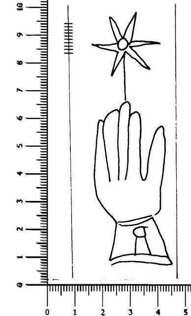 Tipo de filigrana: Sencilla Parte estudiada: Toda la filigrana Código del Motivo: B.02.04.05 Descripción: Mano con cinco dedos, el pulgar separado, sobre el dedo medio una gran flor de seis pétalos y en el manguito la letra R invertida Estructura: Tradicional de líneas Altura (mm): 92 Anchura (mm): 28 Tipo de papel: Verjurado Posición en la hoja: Izquierda centro Nº de corondeles en la hoja: 11 Distancia entre corondeles: 22-37-39-(39)-39-36-37-38-37-38-37-22 Situada entre el corondel 3 y el corondel 4 Posición en relación al texto: Origen de los datos: Datos obtenidos del original Autor de los datos de este registro: María Dolores Díaz de Miranda Macías Tipo de uso: Papel para escribir Estado de la hoja: Cortados todos los bordes Altura de la hoja: 305 Anchura de la hoja: 420 Color de la hoja: Natural Institución: Archivo de la Catedral de Oviedo.