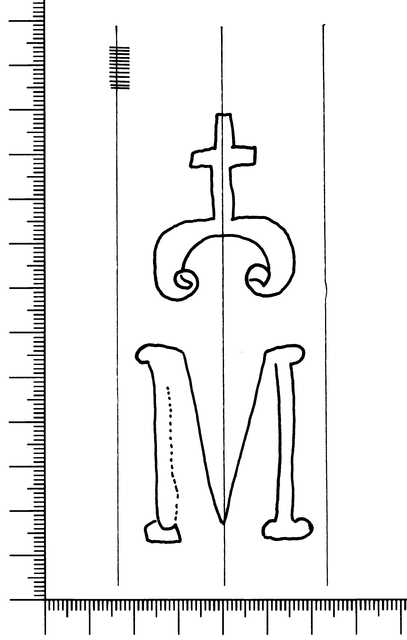 Tipo de filigrana: Sencilla Parte estudiada: Toda la filigrana Código del Motivo: V.01.13.00 Descripción: Letra M con una cruz en la parte superior. Estructura: Tradicional de líneas Altura (mm): 96 Anchura (mm): 40 Tipo de papel: Verjurado Posición en la hoja: Izquierda centro Distancia entre corondeles: Posición en relación al texto: Perpendicular al texto hacia arriba Origen de los datos: Datos obtenidos del original País de localizatión del molino: España Lugar del molino: El Paular (Rascafría). Madrid Fabricante: Monjes Jerónimos Autor de los datos de este registro: María Dolores Díaz de Miranda Macías Tipo de uso: Papel de guardas Estado de la hoja: Cortados todos los bordes Altura de la hoja: 245 Anchura de la hoja: 165 Color de la hoja: Natural Institución: Biblioteca de la Universidad de Oviedo.
