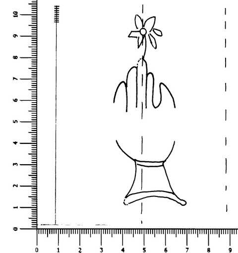 Tipo de filigrana: Sencilla Parte estudiada: Toda la filigrana Código del Motivo: B.02.02.03 Descripción: Mano con el pulgar separado, surmontada por una flor de seis pétalos Estructura: Tradicional de líneas Altura (mm): 89 Anchura (mm): 34 Tipo de papel: Verjurado Posición en la hoja: Medio centro Nº de corondeles en la hoja: 5 Distancia entre corondeles: 30-(40)-(39)-40-40-5 Situada entre el corondel 1 y el corondel 3 Posición en relación al texto: Origen de los datos: Datos obtenidos del original Otros folios o signaturas del documento donde aparece la filigrana: Todo el libro tiene la misma filigrana. Autor de los datos de este registro: María Dolores Díaz de Miranda Macías Tipo de uso: Papel para escribir Estado de la hoja: Cortados todos los bordes Altura de la hoja: 273 Anchura de la hoja: 194 Color de la hoja: Natural Institución: Biblioteca del Monasterio de Montserrat (BM)