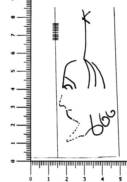 Tipo de filigrana: Sencilla Parte estudiada: Toda la filigrana Código del Motivo: A.02.03.02 Descripción: Cabeza surmontada por una cruz, cabello com bucles Estructura: Tradicional de líneas Altura (mm): [74] Anchura (mm): 31 Tipo de papel: Verjurado Posición en la hoja: Medio superior Nº de corondeles en la hoja: 6 Distancia entre corondeles: 28-34-33-34-33-34-22 Posición en relación al texto: Origen de los datos: Datos obtenidos del original Autor de los datos de este registro: María Dolores Díaz de Miranda Macías Tipo de uso: Papel para escribir Estado de la hoja: Cortados todos los bordes Altura de la hoja: 143 Anchura de la hoja: 108 Color de la hoja: Natural Institución: Biblioteca del Monasterio de Montserrat (BM)