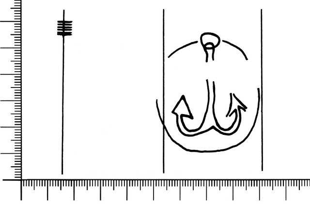 Tipo de filigrana: Sencilla Parte estudiada: Toda la filigrana Código del Motivo: N.06.03.01 Descripción: Ancla dentro de un círculo. Estructura: Tradicional de líneas Altura (mm): [45] Anchura (mm): 39 Tipo de papel: Verjurado Posición en la hoja: Medio centro Nº de corondeles en la hoja: 5 Distancia entre corondeles: 27-38-(38)-(37)-38-35 Situada entre el corondel 2 y el corondel 4 Posición en relación al texto: Paralelo al texto en sentido contrario Origen de los datos: Datos obtenidos del original País de localizatión del molino: Italia Autor de los datos de este registro: María Dolores Díaz de Miranda Macías Tipo de uso: Papel para imprimir Estado de la hoja: Cortados todos los bordes Altura de la hoja: 303 Anchura de la hoja: 213 Color de la hoja: Natural Estado de conservación: Malo Institución: Biblioteca del Monasterio de Montserrat (BM)