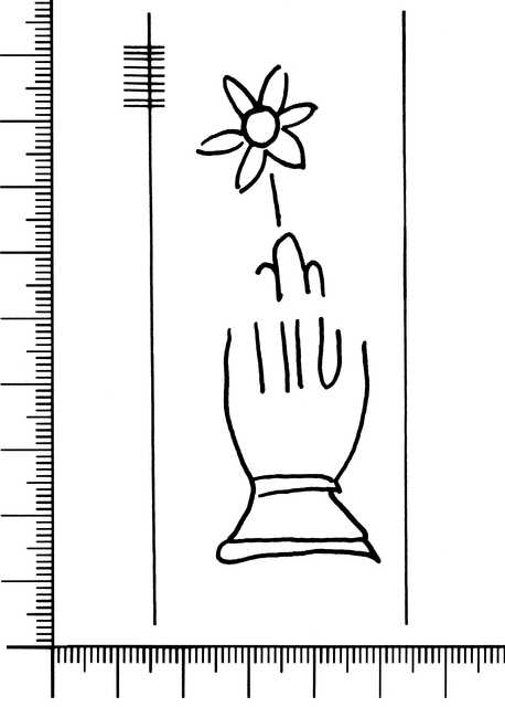 Tipo de filigrana: Sencilla Parte estudiada: Toda la filigrana Código del Motivo: B.02.02.03 Descripción: Mano con cuatro dedos juntos y el pulgar separado. Encima, una flor de seis pétalos. Estructura: Tradicional de líneas Altura (mm): [77] Anchura (mm): 27 Tipo de papel: Verjurado Posición en la hoja: Medio centro Nº de corondeles en la hoja: 5 Distancia entre corondeles: Situada entre el corondel 3 y el corondel 4 Posición en relación al texto: Paralelo al texto en el mismo sentido Origen de los datos: Datos obtenidos del original Autor de los datos de este registro: María Dolores Díaz de Miranda Macías Tipo de uso: Papel para imprimir Estado de la hoja: Cortados todos los bordes Altura de la hoja: 284 Anchura de la hoja: 200 Color de la hoja: Natural Información adicional: La altura de la hoja corresponde a la del bifolio. Institución: Biblioteca de Montserrat, Barcelona.