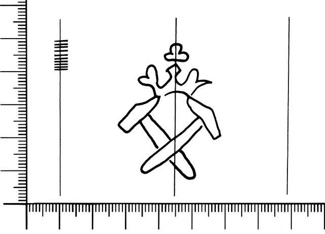 Tipo de filigrana: Sencilla Parte estudiada: Toda la filigrana Código del Motivo: N.05.02.02 Descripción: Martillos. Encima, una corona. Estructura: Tradicional de líneas Altura (mm): 42 Anchura (mm): 32 Tipo de papel: Verjurado Posición en la hoja: Izquierda centro Nº de corondeles en la hoja: 12 Distancia entre corondeles: Situada entre el corondel 1 y el corondel 3 Posición en relación al texto: Perpendicular al texto hacia arriba Origen de los datos: Datos obtenidos del original Autor de los datos de este registro: María Dolores Díaz de Miranda Macías Tipo de uso: Papel para imprimir Estado de la hoja: Cortados todos los bordes Altura de la hoja: 295 Anchura de la hoja: 429 Color de la hoja: Natural Estado de conservación: Restaurado Institución: Biblioteca Pública de Gerona.
