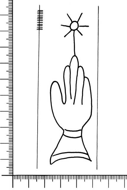 Tipo de filigrana: Sencilla Parte estudiada: Toda la filigrana Código del Motivo: B.02.02.03 Descripción: Mano con los cuatro dedos juntos y el pulgar separado. Encima, una flor de seis pétalos. Estructura: Tradicional de líneas Altura (mm): 95 Anchura (mm): 27 Tipo de papel: Verjurado Posición en la hoja: Izquierda centro Nº de corondeles en la hoja: 11 Distancia entre corondeles: Situada entre el corondel 3 y el corondel 4 Posición en relación al texto: Perpendicular al texto hacia abajo Origen de los datos: Datos obtenidos del original Autor de los datos de este registro: María Dolores Díaz de Miranda Macías Tipo de uso: Papel para imprimir Estado de la hoja: Cortados todos los bordes Altura de la hoja: 295 Anchura de la hoja: 429 Color de la hoja: Natural Estado de conservación: Restaurado Institución: Biblioteca Pública de Gerona.