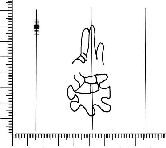 Tipo de filigrana: Sencilla Parte estudiada: Toda la filigrana Código del Motivo: B.04.03.00 Descripción: Mano bendiciendo con puño fastoneado y dentro, un motivo no identificable. Estructura: Tradicional de líneas Altura (mm): 60 Anchura (mm): 18 Tipo de papel: Verjurado Posición en la hoja: Medio centro Nº de corondeles en la hoja: 6 Distancia entre corondeles: Situada entre el corondel 2 y el corondel 4 Posición en relación al texto: Paralelo al texto en el mismo sentido Origen de los datos: Datos obtenidos del original Autor de los datos de este registro: María Dolores Díaz de Miranda Macías Tipo de uso: Papel para imprimir Estado de la hoja: Cortados todos los bordes Altura de la hoja: 264 Anchura de la hoja: 198 Color de la hoja: Natural Información adicional: La altura de la hoja corresponde a la del bifolio. Institución: Biblioteca de Montserrat, Barcelona.