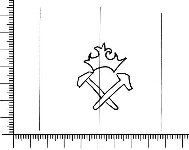 Tipo de filigrana: Sencilla Parte estudiada: Toda la filigrana Código del Motivo: N.05.02.02 Descripción: Dos martillos cruzados. Encima, una corona. Estructura: Tradicional de líneas Altura (mm): 40 Anchura (mm): 34 Tipo de papel: Verjurado Posición en la hoja: Indeterminada Distancia entre corondeles: Posición en relación al texto: Perpendicular al texto hacia abajo Origen de los datos: Datos obtenidos del original Autor de los datos de este registro: María Dolores Díaz de Miranda Macías Tipo de uso: Papel para imprimir Estado de la hoja: Cortados todos los bordes Altura de la hoja: Anchura de la hoja: Color de la hoja: Natural Institución: Biblioteca de Barcelona.