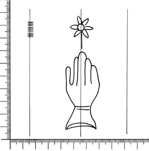 Tipo de filigrana: Sencilla Parte estudiada: Toda la filigrana Código del Motivo: B.02.02.03 Descripción: Mano con cuatro dedos juntos y pulgar separado. Encima, una flor de seis pétalos. Estructura: Tradicional de líneas Altura (mm): 90 Anchura (mm): 26 Tipo de papel: Verjurado Posición en la hoja: Indeterminada Distancia entre corondeles: Posición en relación al texto: Perpendicular al texto hacia arriba Origen de los datos: Datos obtenidos del original Autor de los datos de este registro: María Dolores Díaz de Miranda Macías Tipo de uso: Papel para imprimir Estado de la hoja: Cortados todos los bordes Altura de la hoja: Anchura de la hoja: Color de la hoja: Natural Institución: Biblioteca de Barcelona.