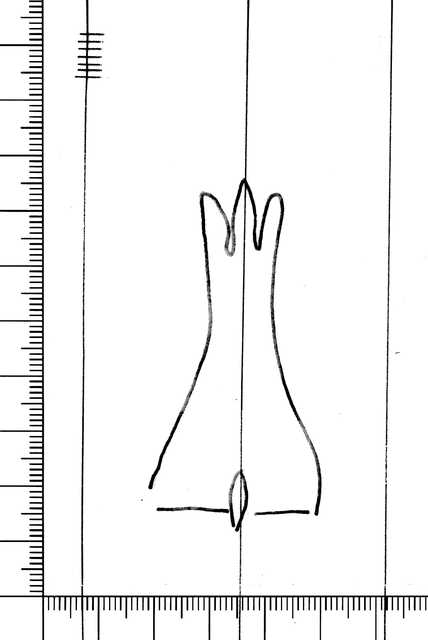 Tipo de filigrana: Sencilla Parte estudiada: Toda la filigrana Código del Motivo: O.01.01.01 Descripción: Campana Estructura: Tradicional de líneas Altura (mm): 64 Anchura (mm): 30 Tipo de papel: Verjurado Posición en la hoja: Medio centro Distancia entre corondeles: Situada entre el corondel 11 y el corondel 12 Posición en relación al texto: Origen de los datos: Datos obtenidos del frotado País de localizatión del molino: Italia Estado de la hoja: Cortados todos los bordes Altura de la hoja: Anchura de la hoja: Color de la hoja: Natural Institución: Archivo del Monasterio de Sant Pere de les Puel·les -AMSP-
